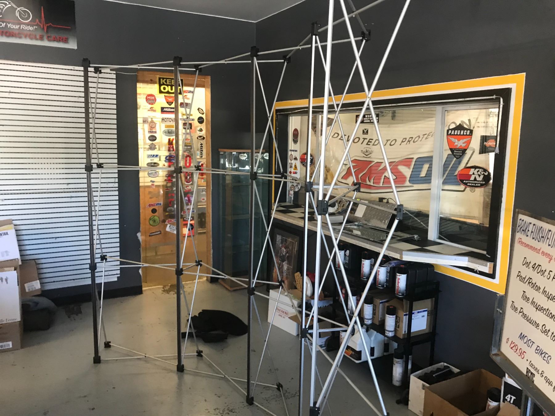 TRADE SHOW DISPLAY BOOTH (90"H X 10'W) WITH LIGHTS, POWER & TRAVEL CASE