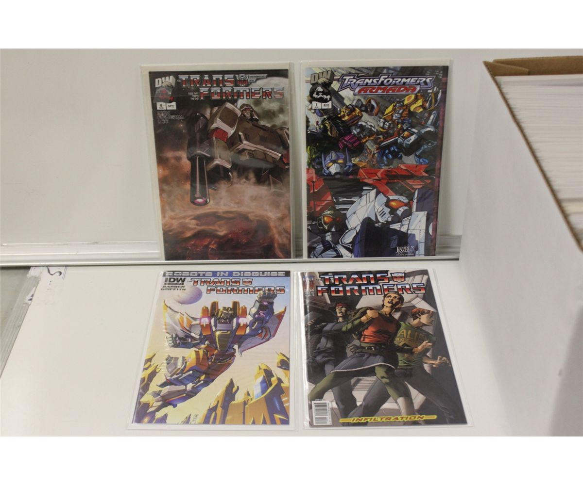 TRANSFORMERS SHORT BOX OF MIXED TITLES FROM THE 2,000'S (MID 2,000'S - 2012) HIGH GRADE, UNREAD NM TO MINT AVERAGE.