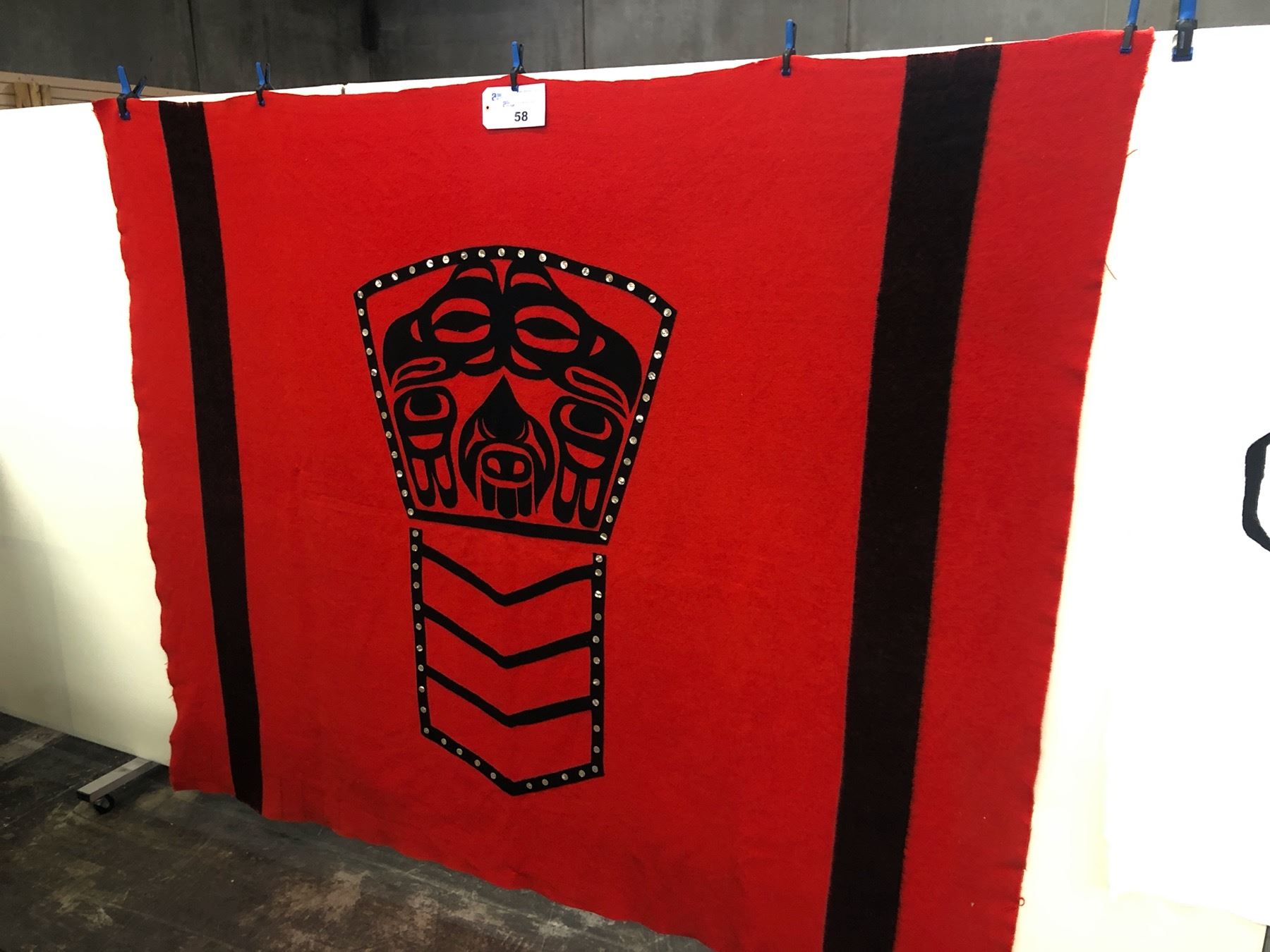 TRAPPER POINT, HAND SEWN BLANKET WITH ABALONE BUTTON ACCENTS, 87" X 69"