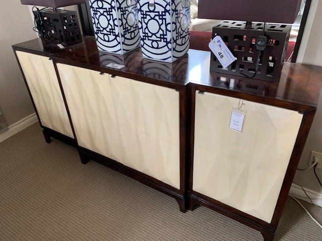 TRAVIATTA DARK WOOD 4 DOOR ENTERTAINMENT CONSOLE WITH DECOR ITEMS