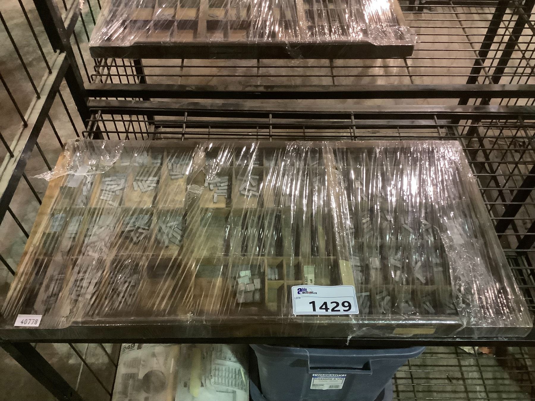 TRAY OF ANTIQUE TYPEWRITER BITS, LETTERS AND NUMBERS