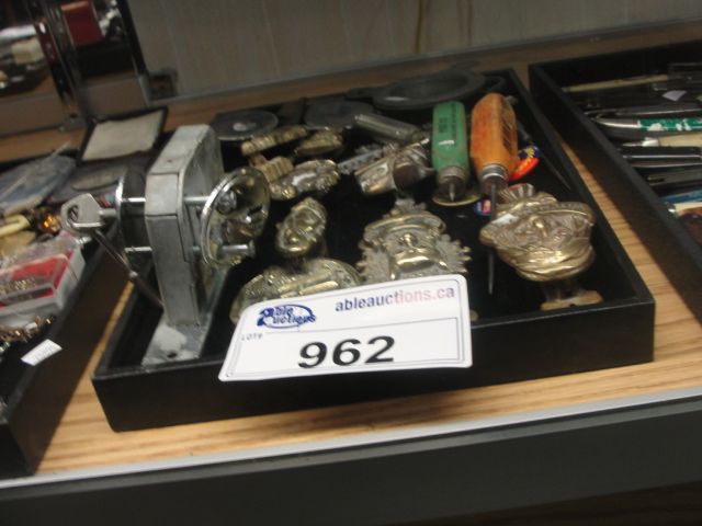 TRAY OF ASSORTED VINTAGE DOOR KNOCKERS, LOCKS AND OTHER COLLECTABLE ITEMS; TRAY NOT INCLUDED