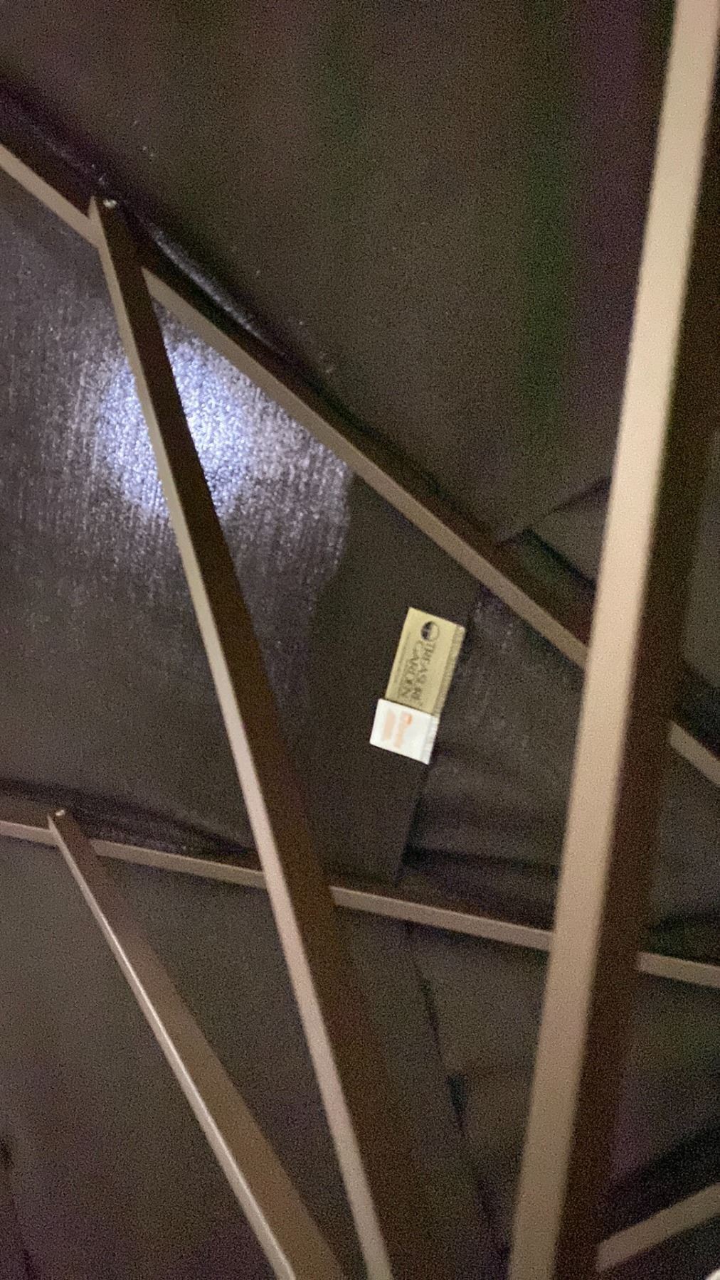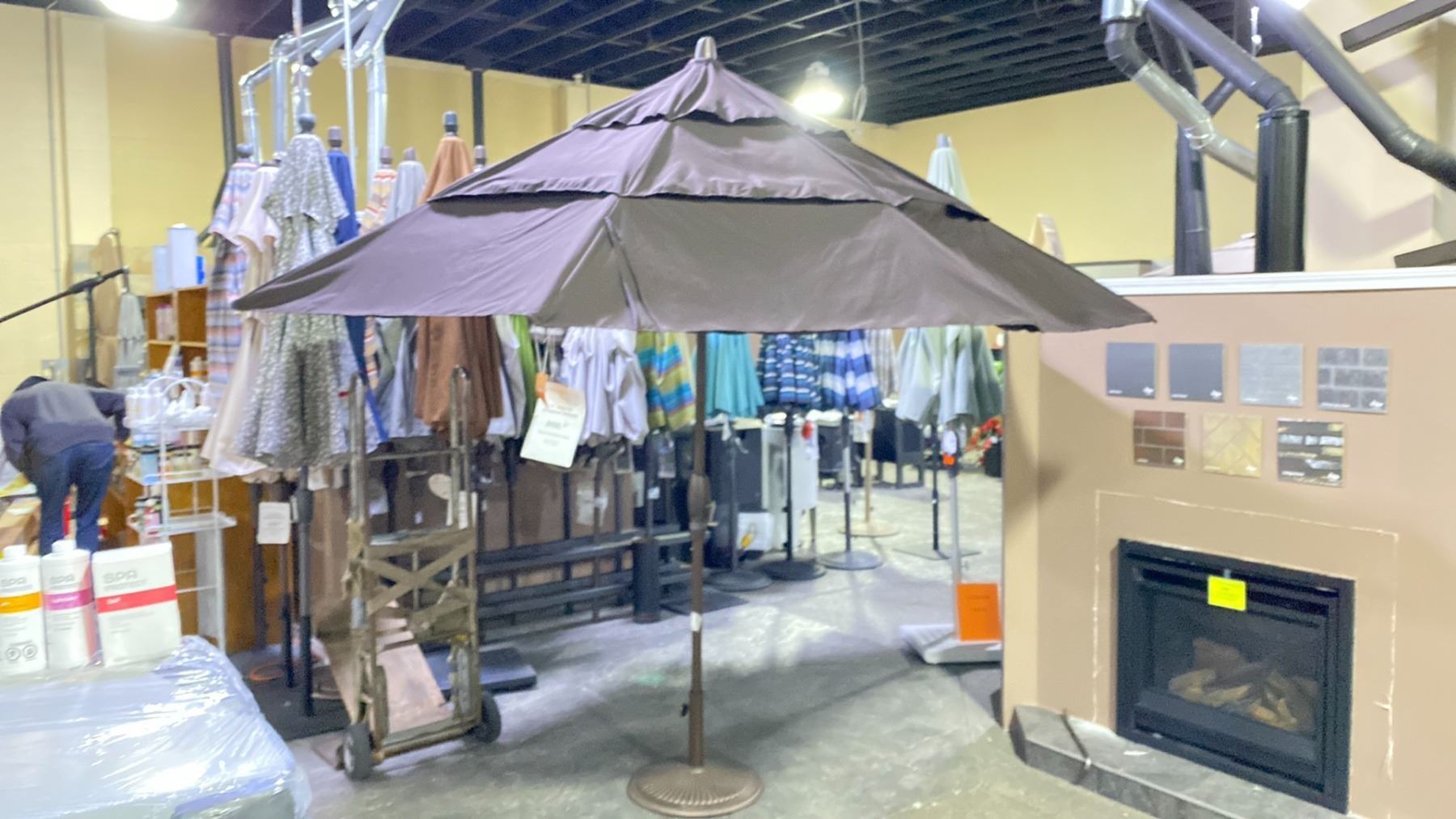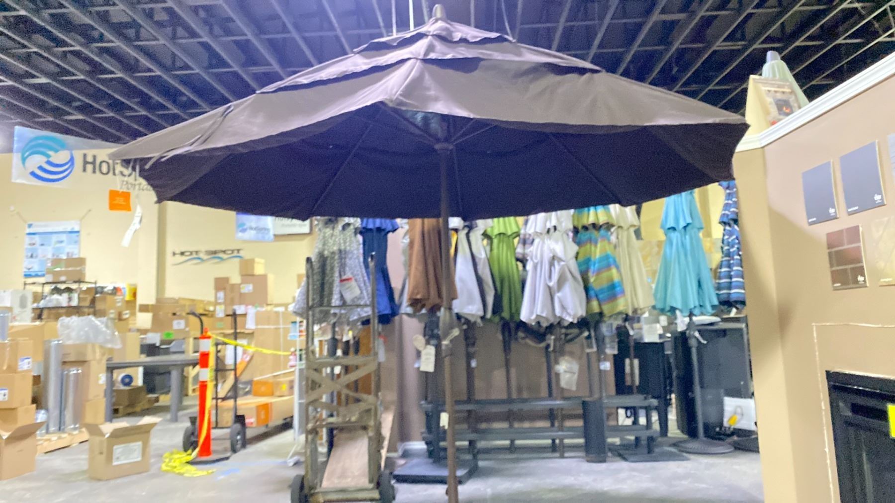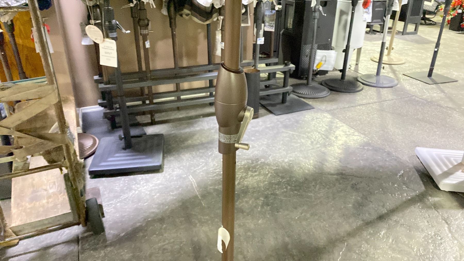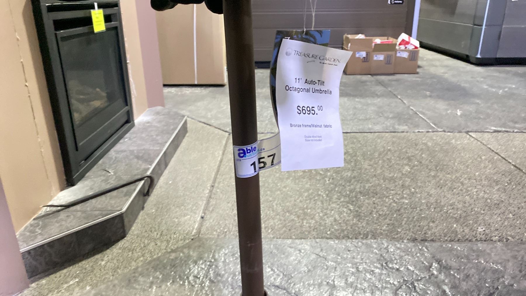 TREASURE GARDEN 11' AUTO TILT OCTAGONAL UMBRELLA. BRONZE FRAME WALNUT FABRIC. DOUBLE VENTED. NO BASE