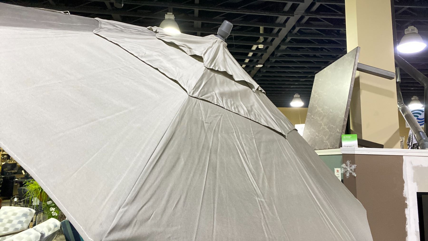 TREASURE GARDEN 9' COLLAR-TILT OCTAGONAL UMBRELLA. ANTHRACITE FRAME WITH BEACON ASH FABRIC