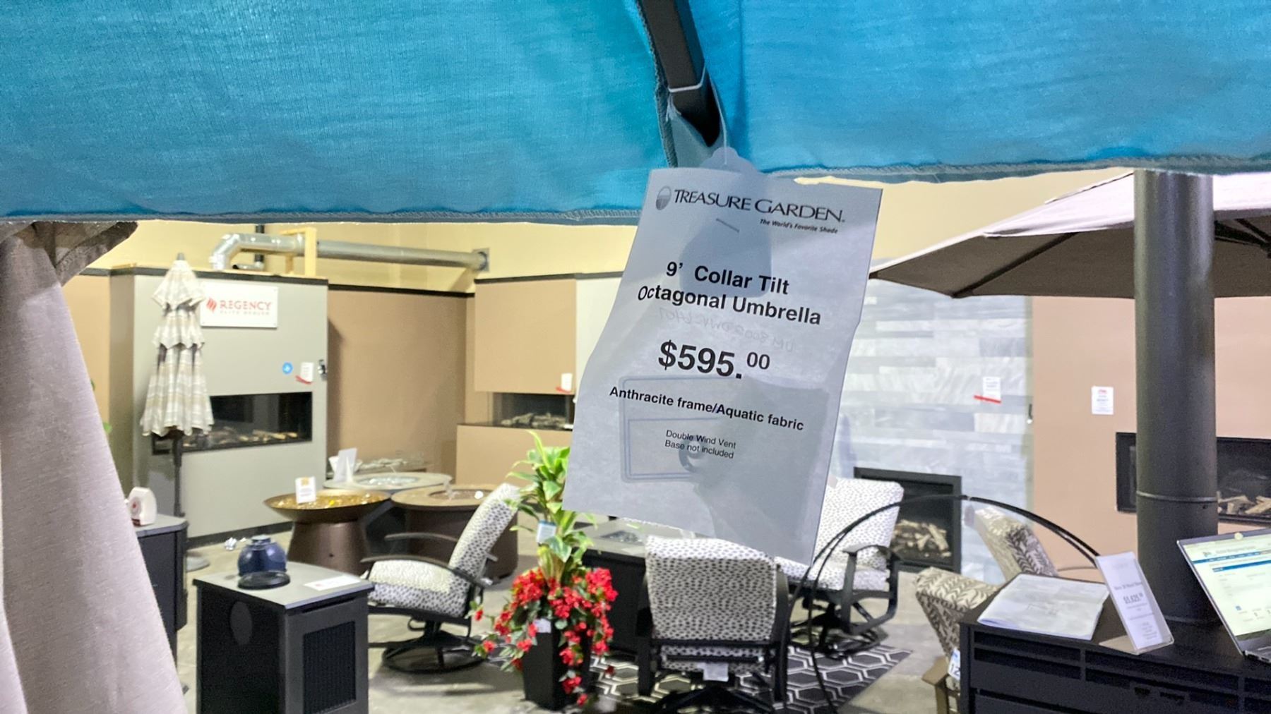TREASURE GARDEN 9' COLLAR TILT OCTAGONAL UMBRELLA WITH WEIGHTED BASE. ANTHRACITE FRAME WITH AQUATIC FABRIC
