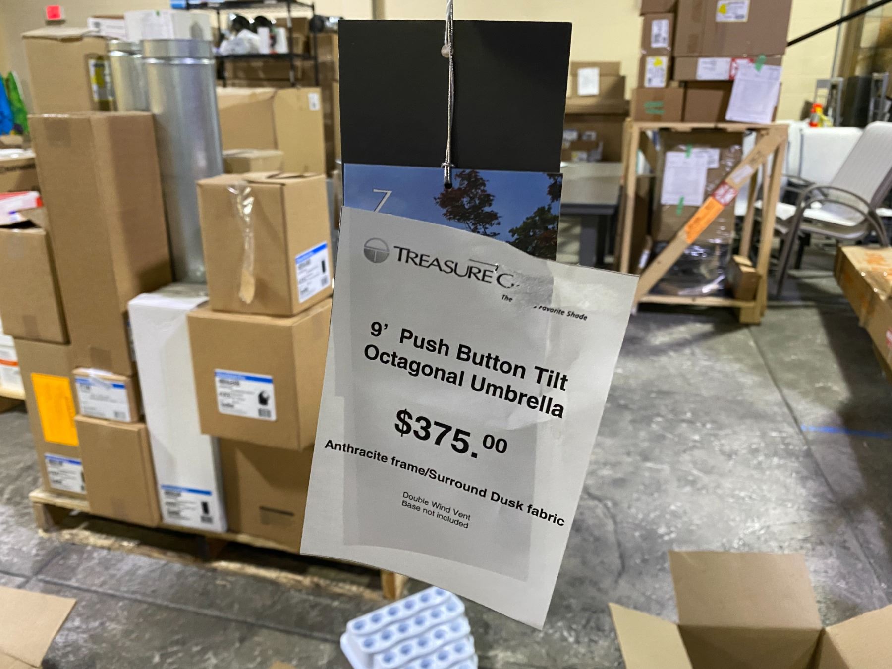 TREASURE GARDEN 9' OCTAGONAL UMBRELLA WITH PUSH BUTTON TILT WITH WEIGHTED BASE. ANTHRACITE COLOR FRAME/SURROUND DUSK FABRIC