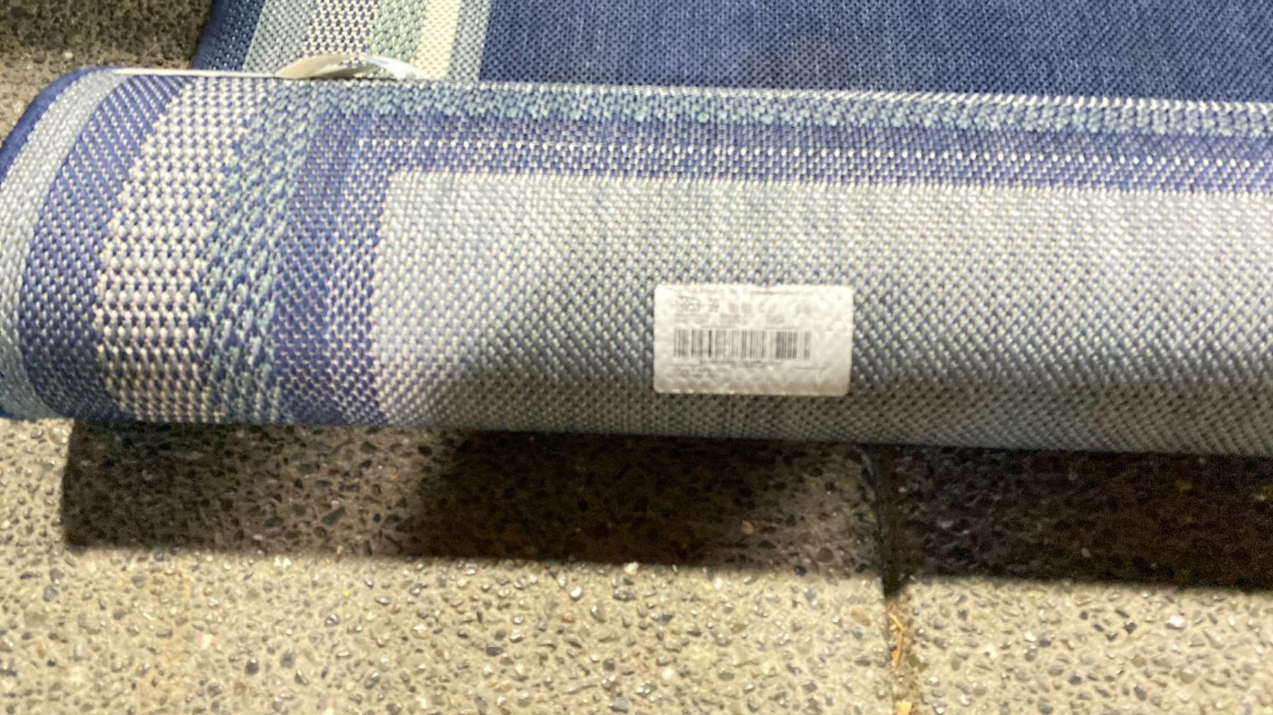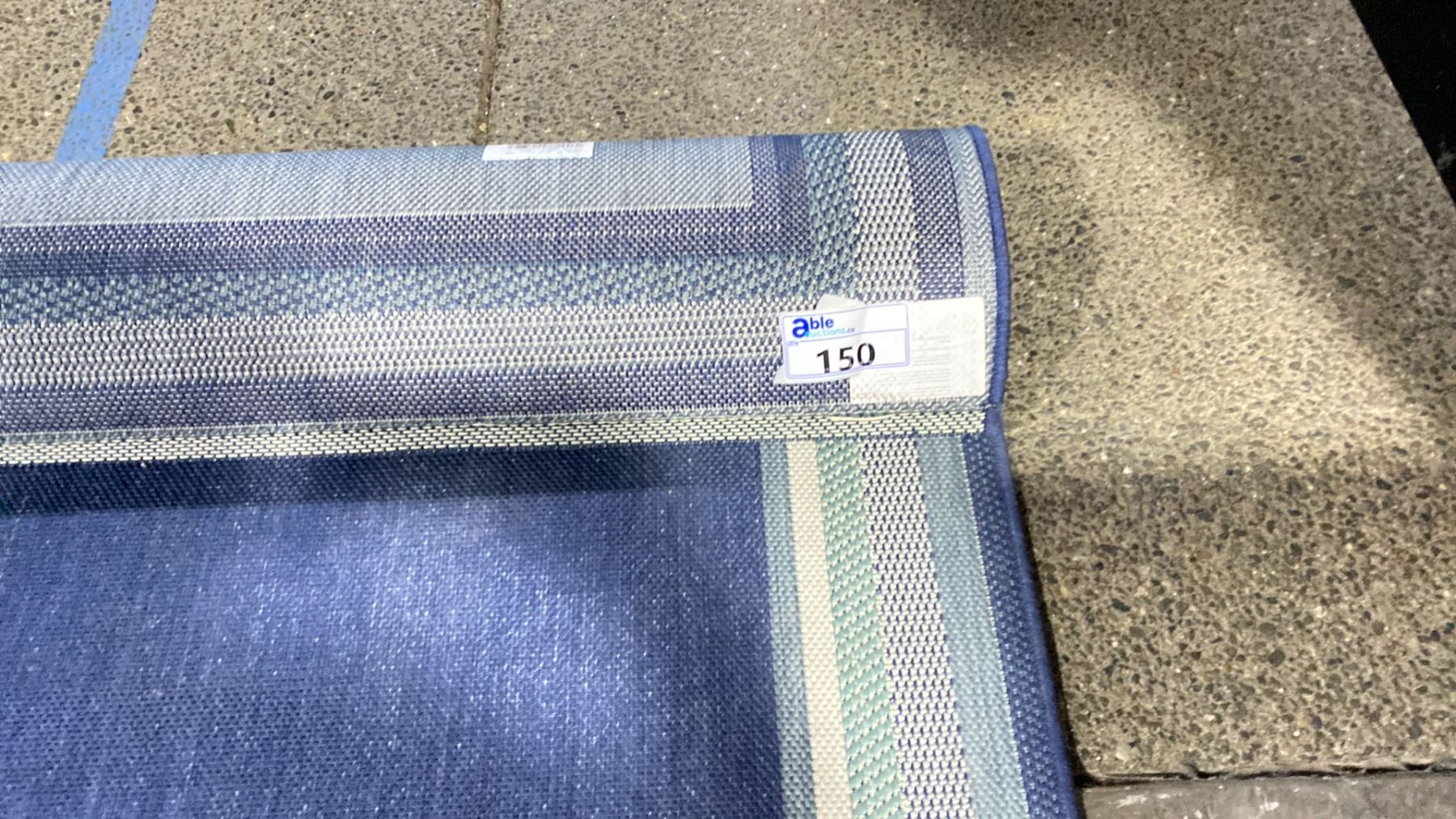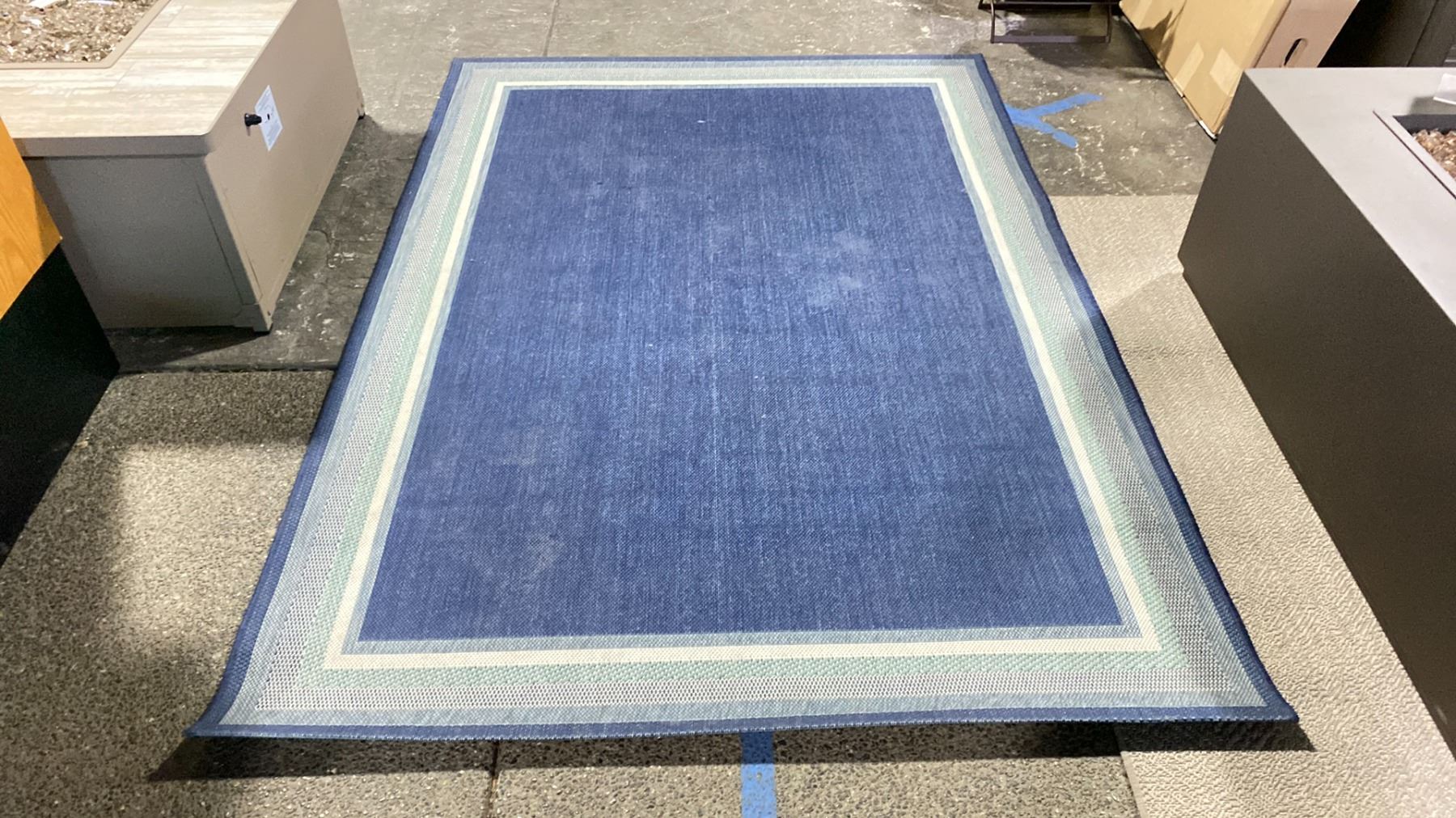 TREASURE GARDEN MADE IN BELGIUM OUTDOOR FLAT WEAVE CARPET. 7'5"X5'3" WEATHER PROOF, UV PROTECTED