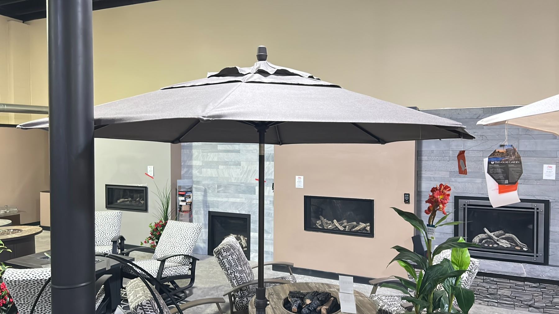 TREASURE GARDEN OCTAGONAL SUNBRELLA BRONZE/MUSHROOM UMBRELLA. 9' AUTO-TILT WITH METAL BASE
