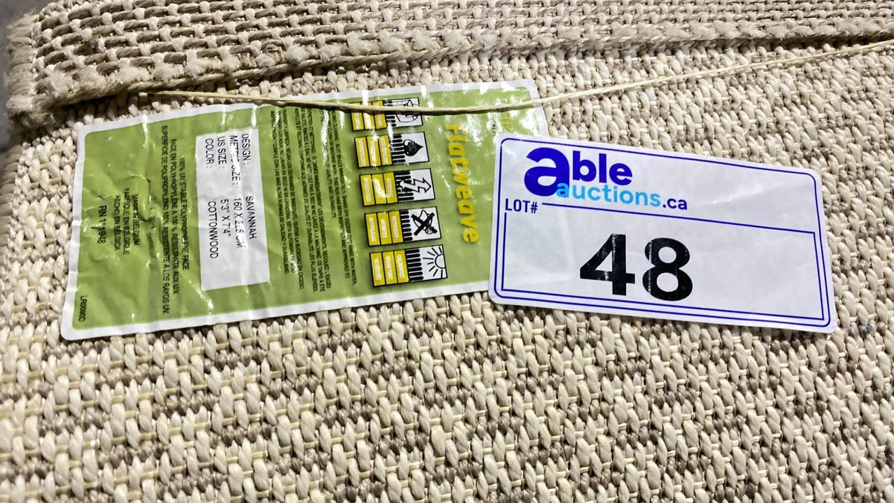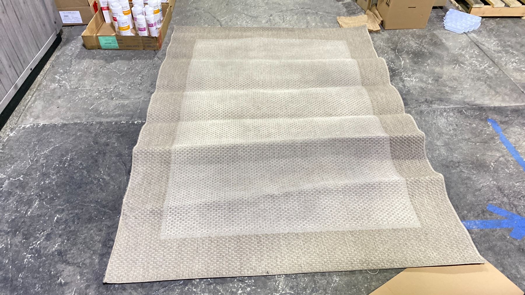 TREASURE GARDEN OUTDOOR RUG. FLAT WEAVE. 7'4"X5'3". COTTONWOOD COLOR. UV PROOF, WEATHERPROOF