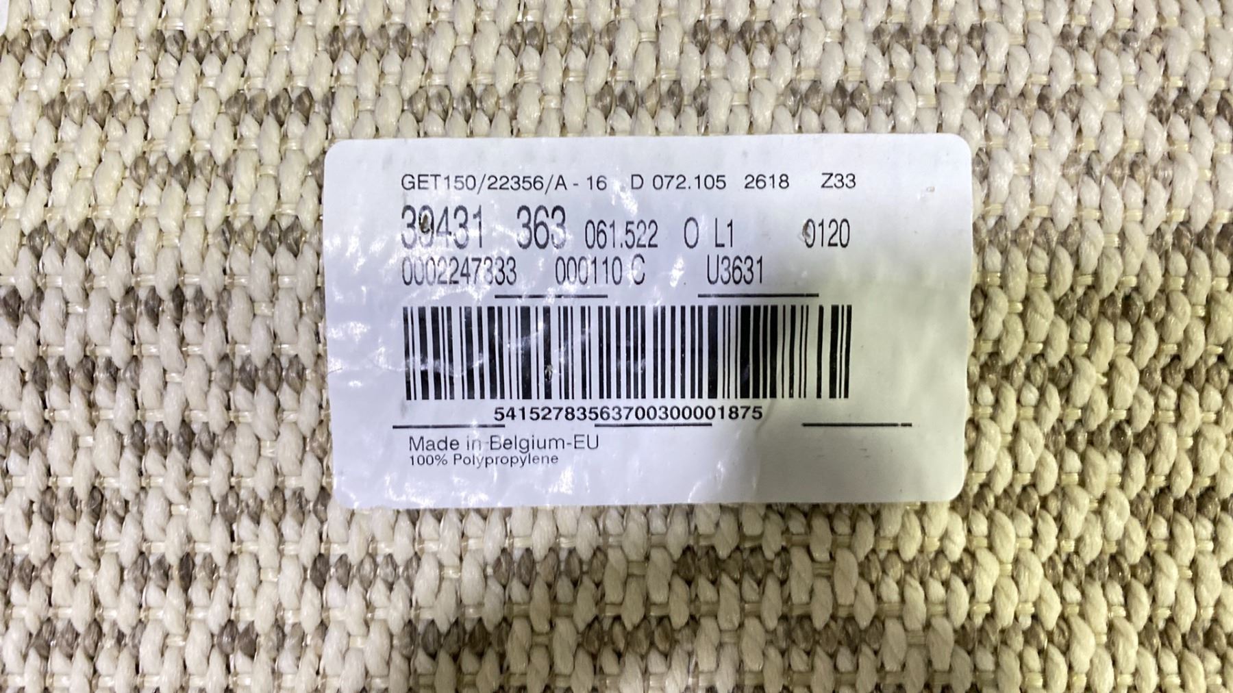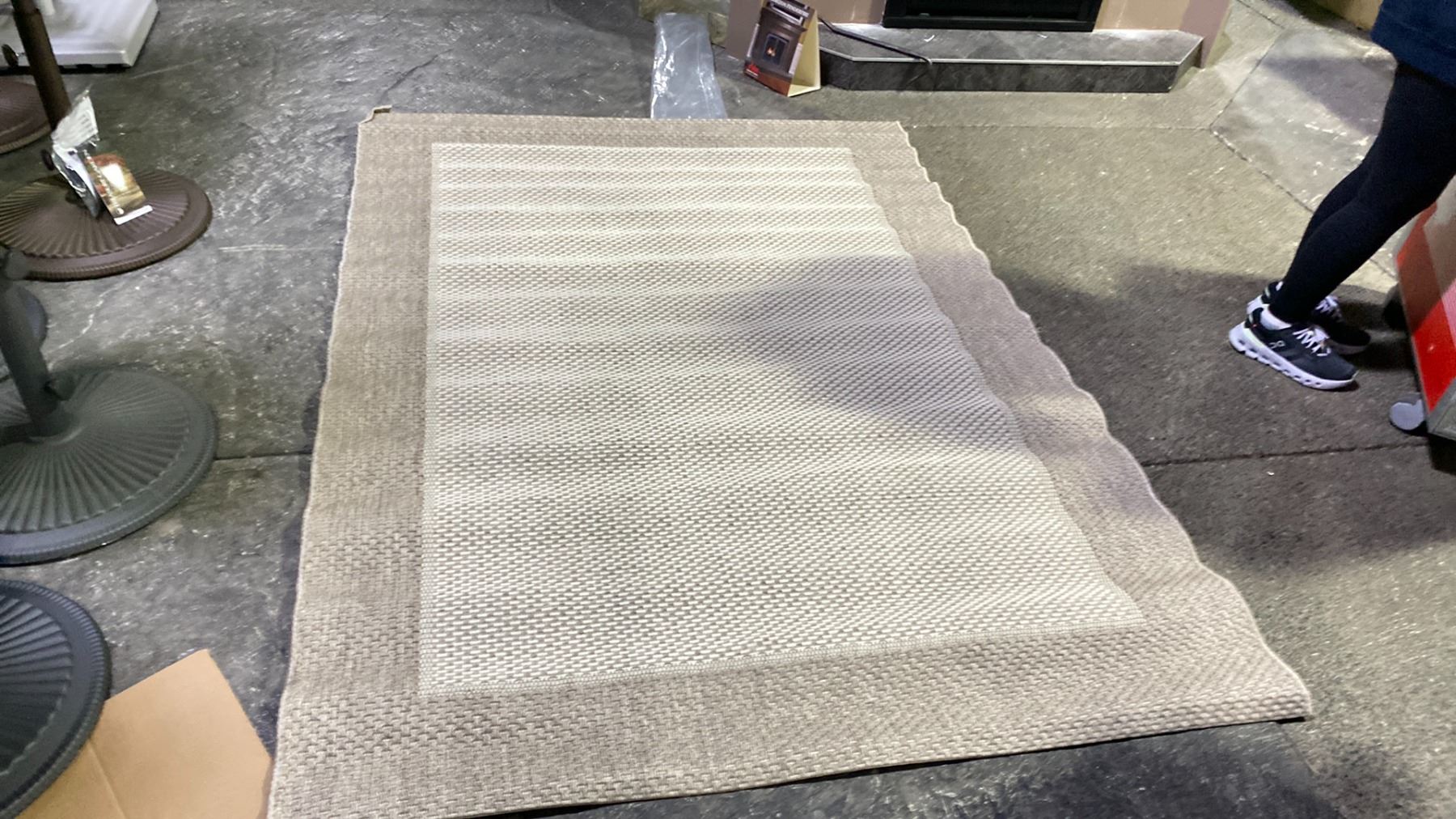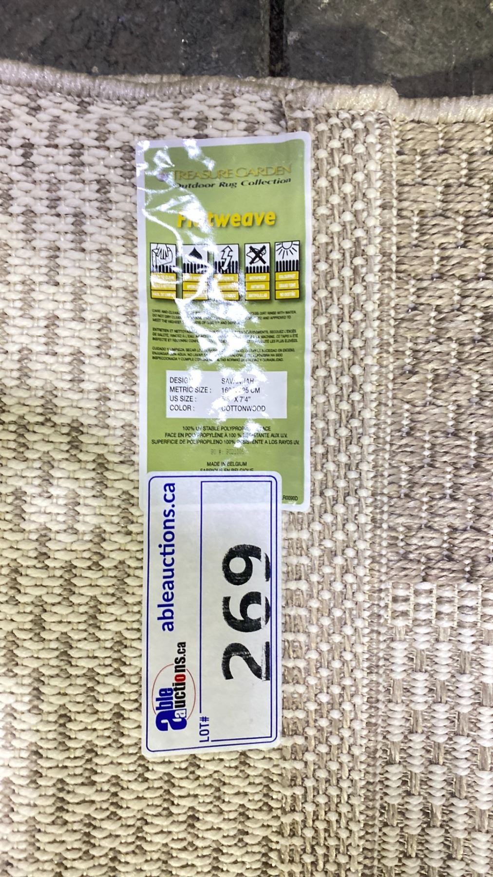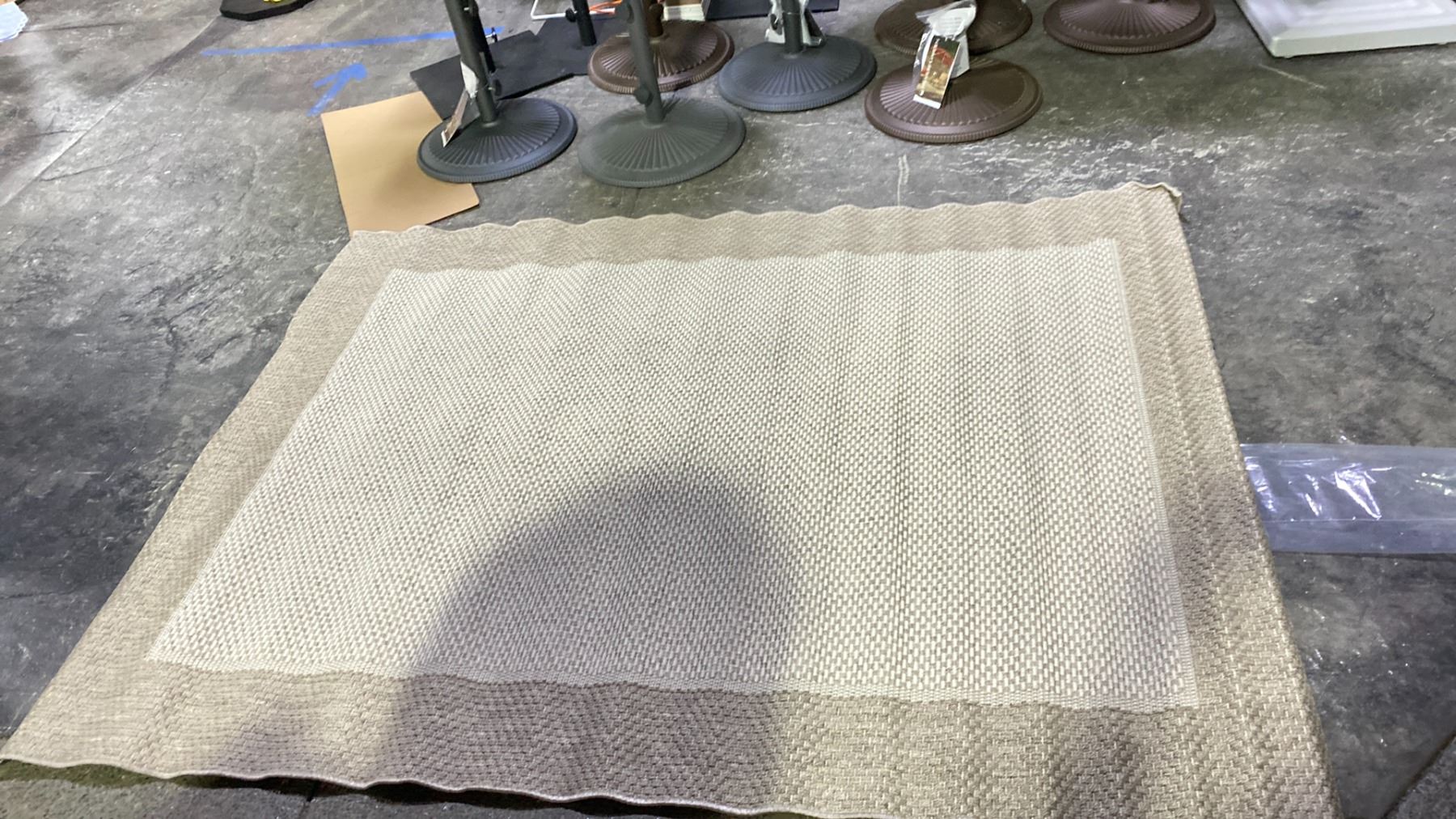 TREASURE GARDEN OUTDOOR RUG. FLAT WEAVE. 7'4"X5'3". COTTONWOOD COLOR. UV PROOF, WEATHERPROOF