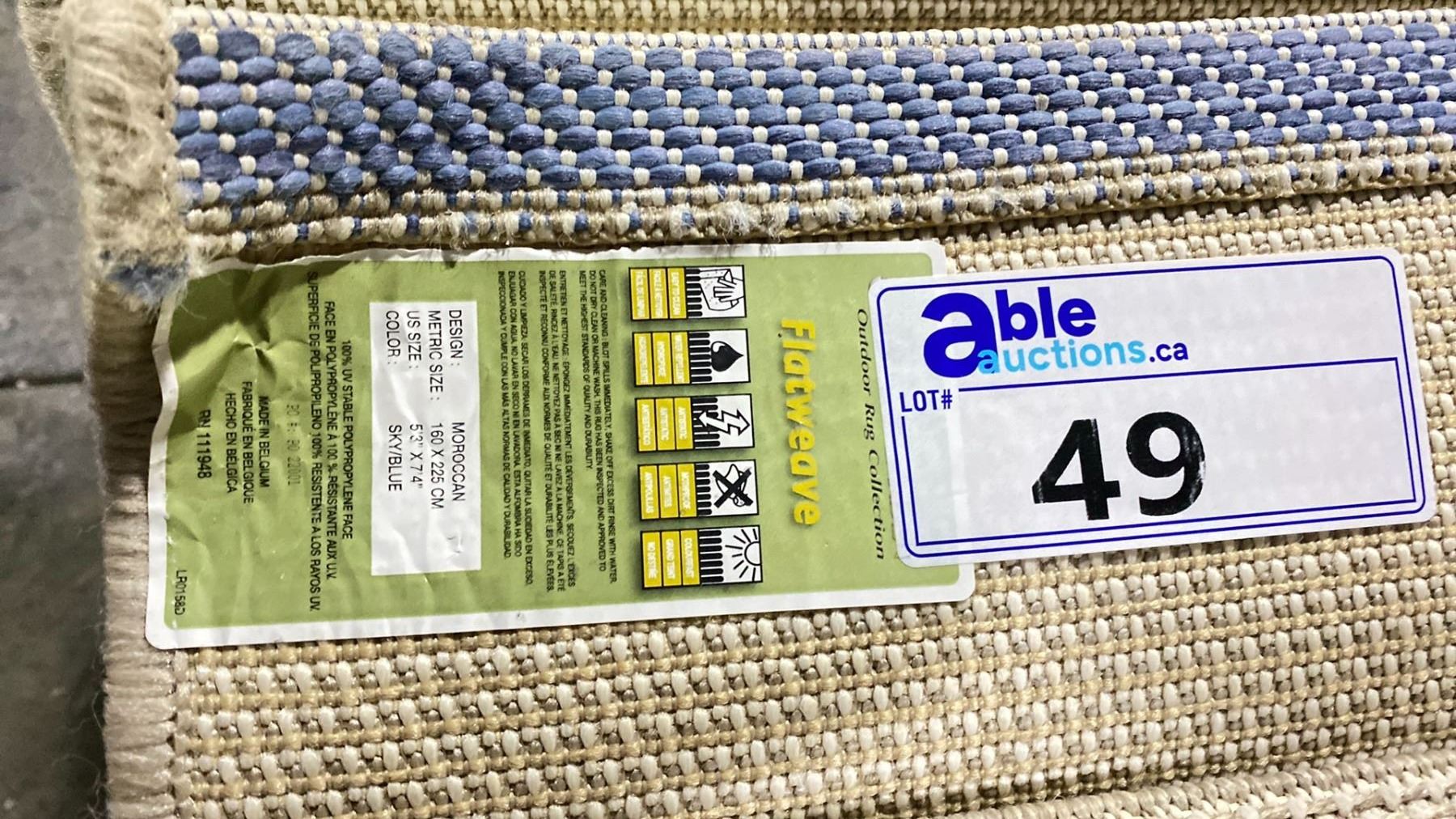 TREASURE GARDEN OUTDOOR RUG. FLAT WEAVE. 7'4"X5'3". SKY/BLUE COLOR. UV PROOF, WEATHERPROOF
