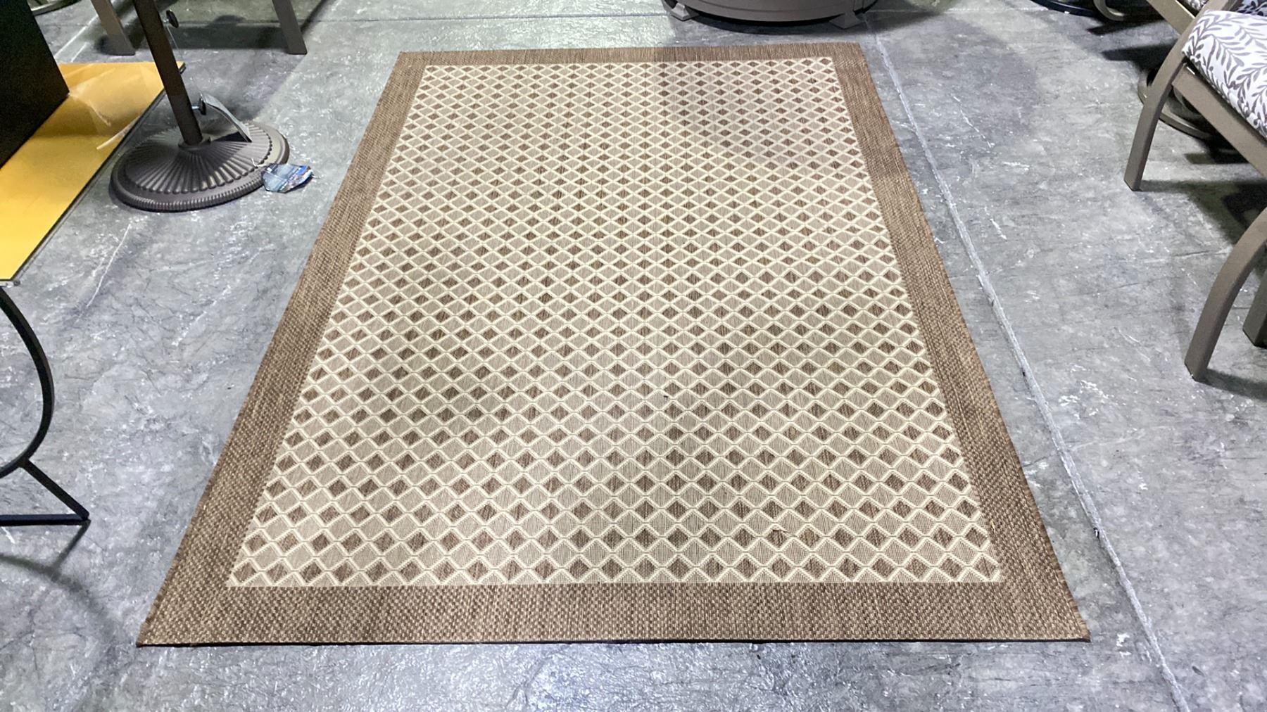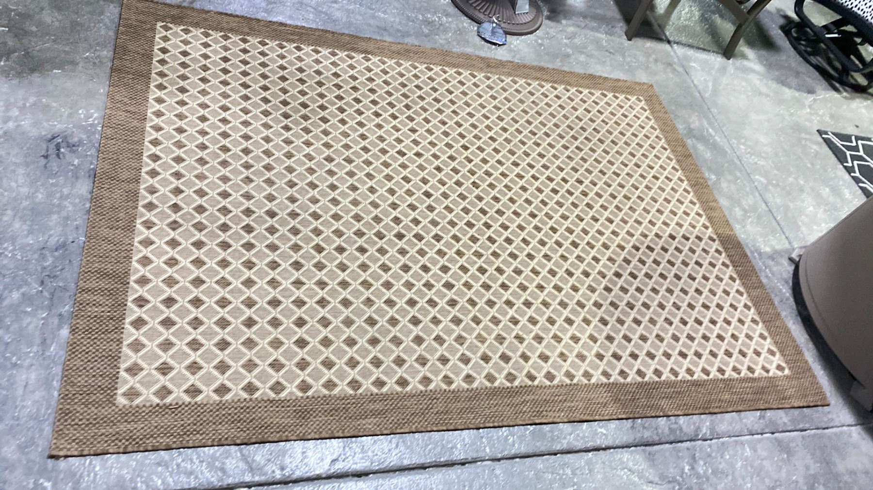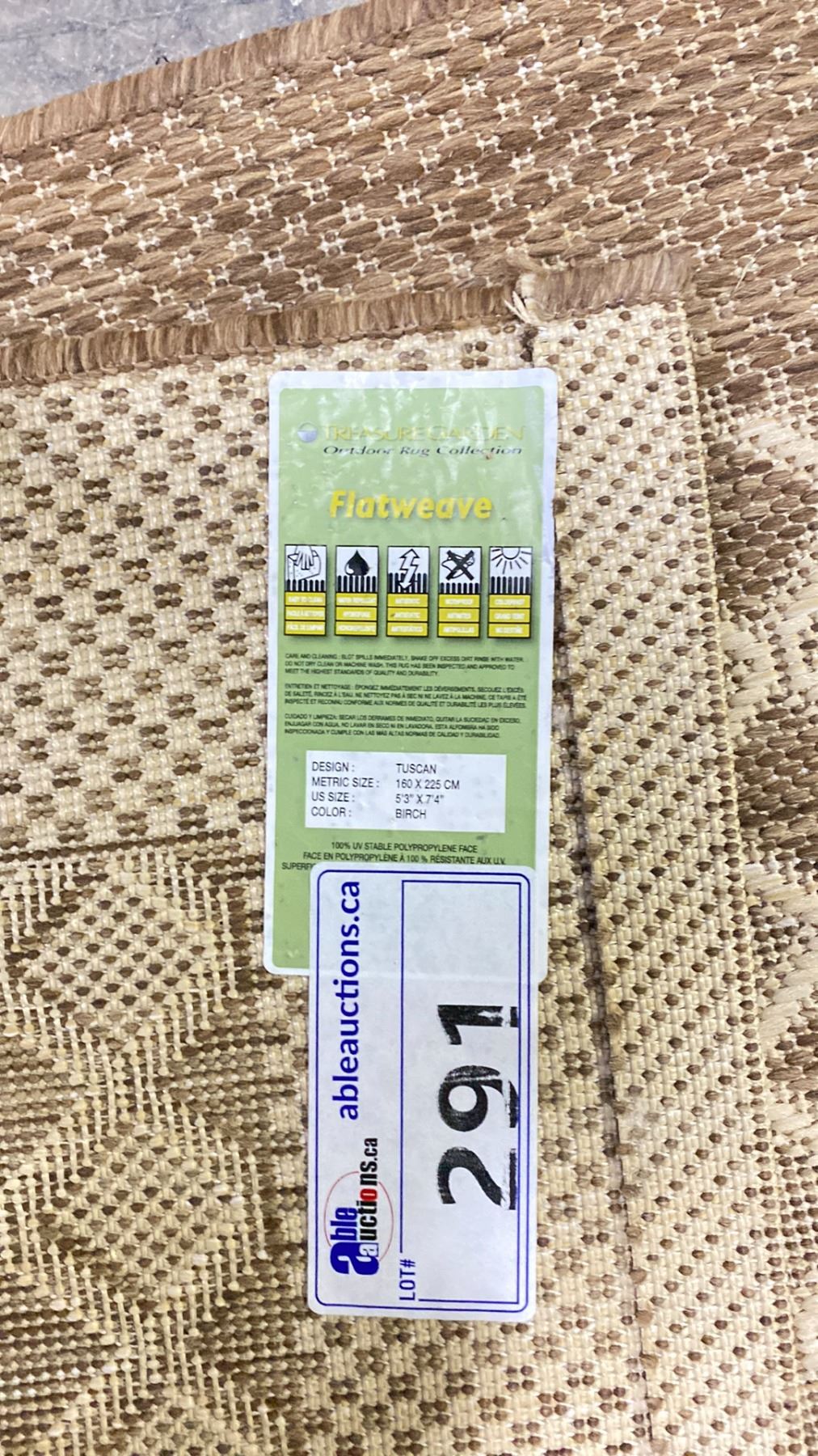 TREASURE GARDEN OUTDOOR RUG. FLAT WEAVE. 7'4"X5'3". TUCSON BIRCH COLOR. UV PROOF, WEATHERPROOF