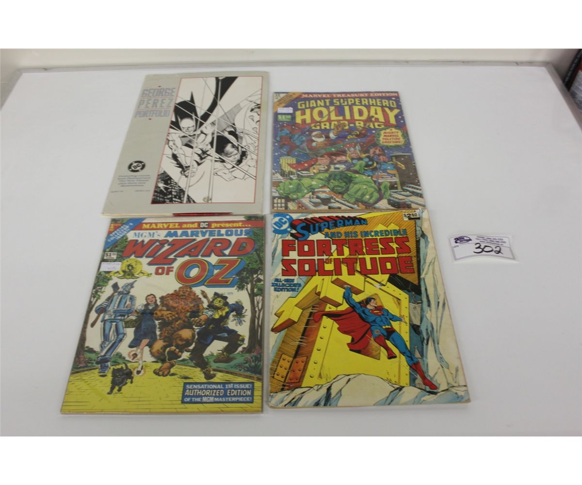 TREASURY EDITION LOT - 3 COMICS + GEORGE PEREZ BATMAN ART SUPERMAN 26 GD, WIZARD OF OZ FN, SUPERHERO HOLDIAY GRAB BAG 13, FN-