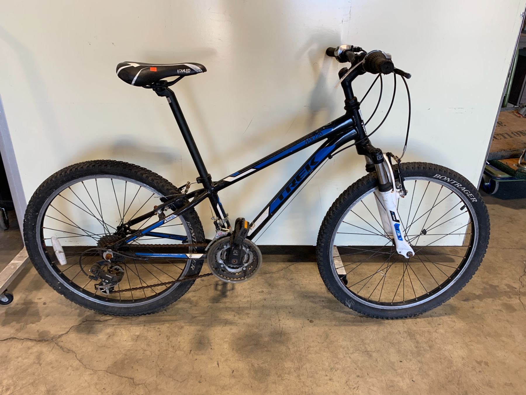 TREK M220 BLACK AND BLUE 21 SPEED FRONT SUSPENSION HYBRID BIKE