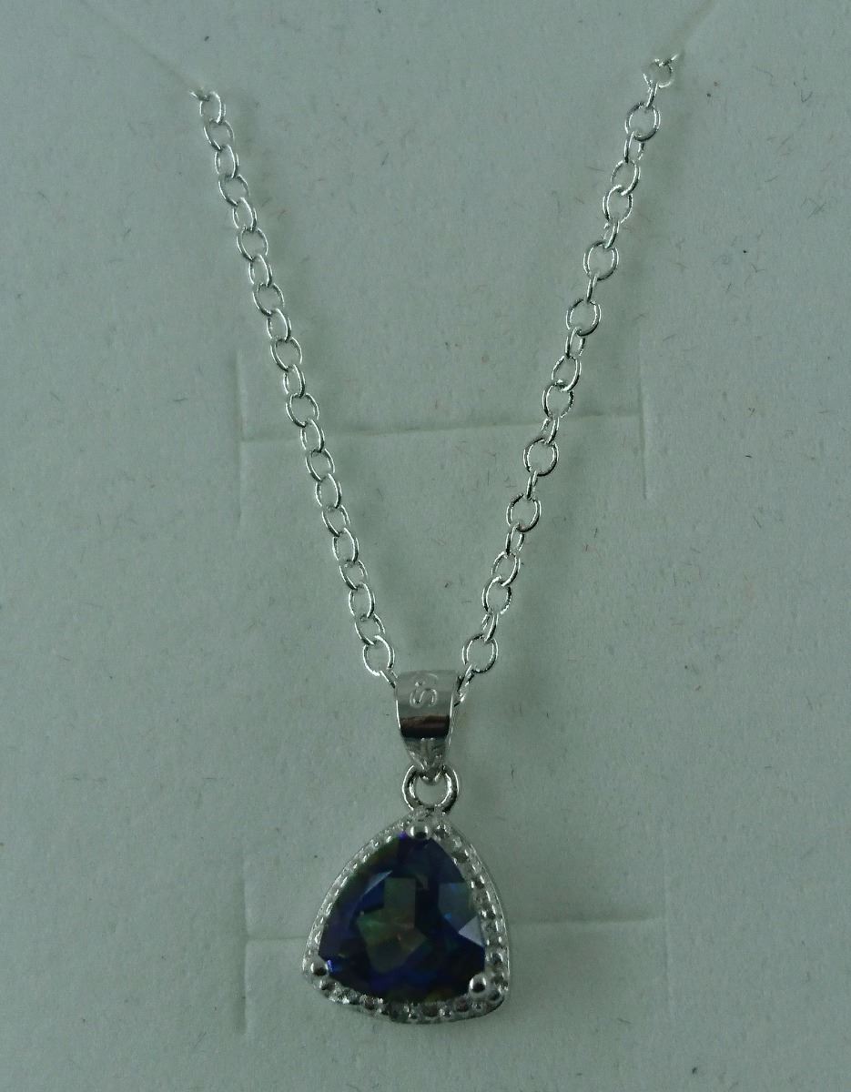 TRILLION CUT MYSTIC TOPAZ + DIAMOND NECKLACE. OCEAN BLUE COLOR. 18" CHAIN RETAIL VALUE $300