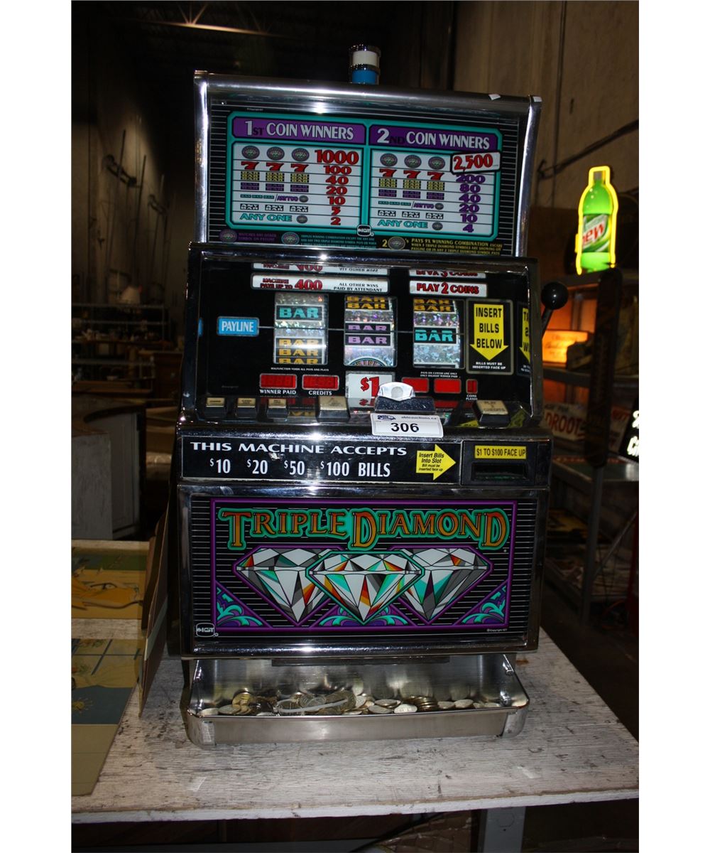 TRIPLE DIAMOND CASINO SLOT MACHINE - COMES WITH A LARGE ASSORTMENT OF TOKENS