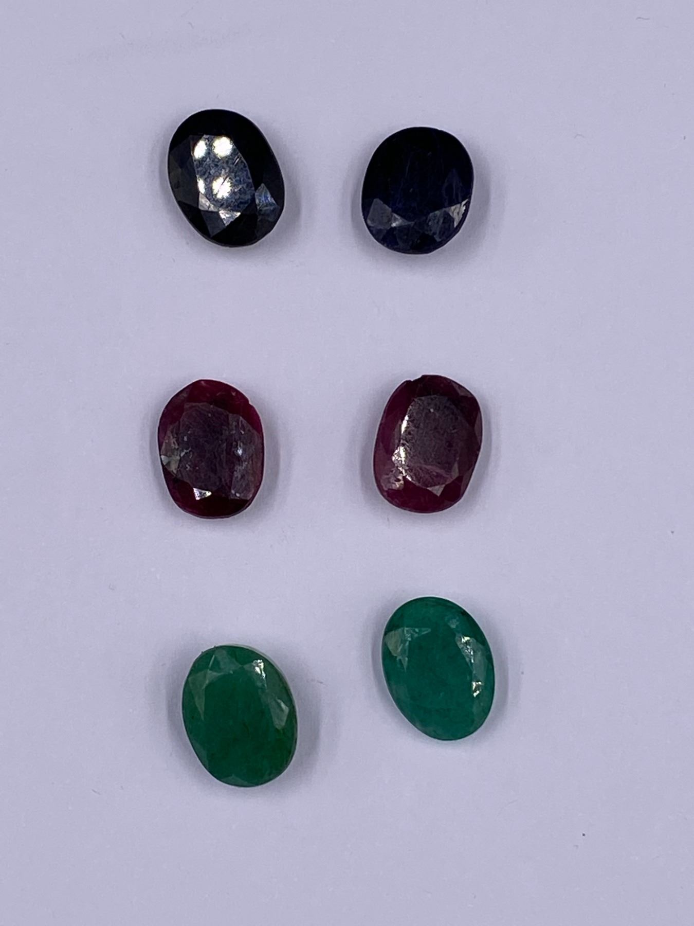 TRIPLE MIX ROUGH NATURAL GEMSTONES; SAPPHIRE 18.15CT, RUBY 18.45CT, EMERALD 15.30CT, UNHEATED AND