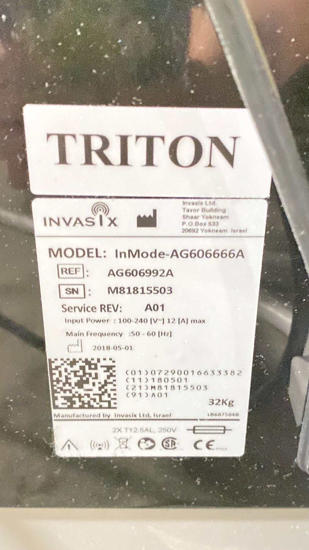 TRITON BY INMODE COMMERCIAL LASER HAIR REMOVAL MACHINE MODEL NUMBER: INMODE-AG606666A SN: M81815503 *PASSWORD 1234*