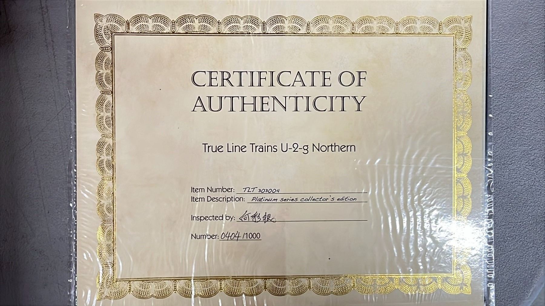 TRUE LINE TRAINS PLATINUM SERIES COLLECTORS EDITION U-2-G NORTHERN HO SCALE MODEL TRAINS *0404/1000*