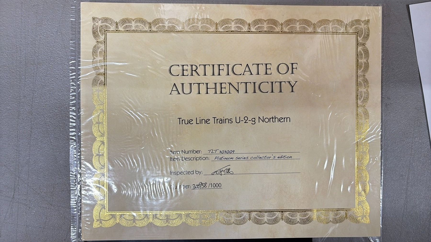 TRUE LINE TRAINS PLATINUM SERIES COLLECTORS EDITION U-2-G NORTHERN HO SCALE MODEL TRAINS *0958/1000*