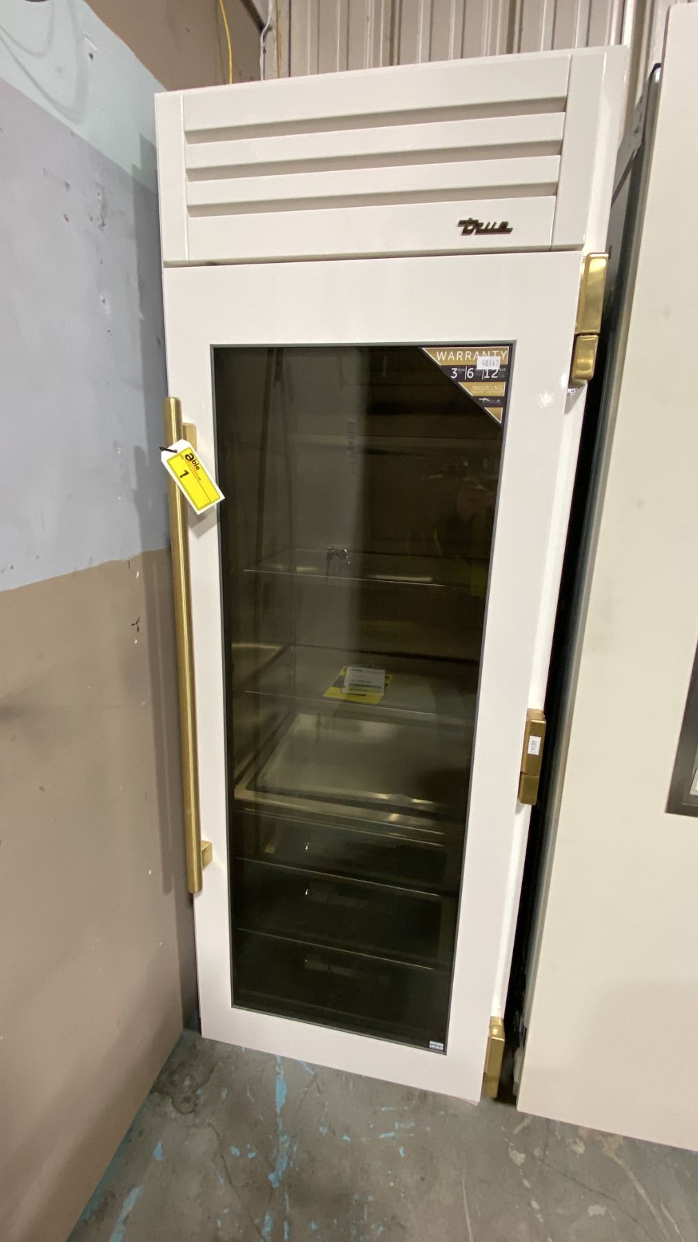 TRUE REFRIGERATION MODEL T R-30REF-R-SG-A. WHITE 30" GLASS FRONT SINGLE DOOR BUILT IN REFRIGERATOR SN 9314176 RETAIL PRICE $17,785.00