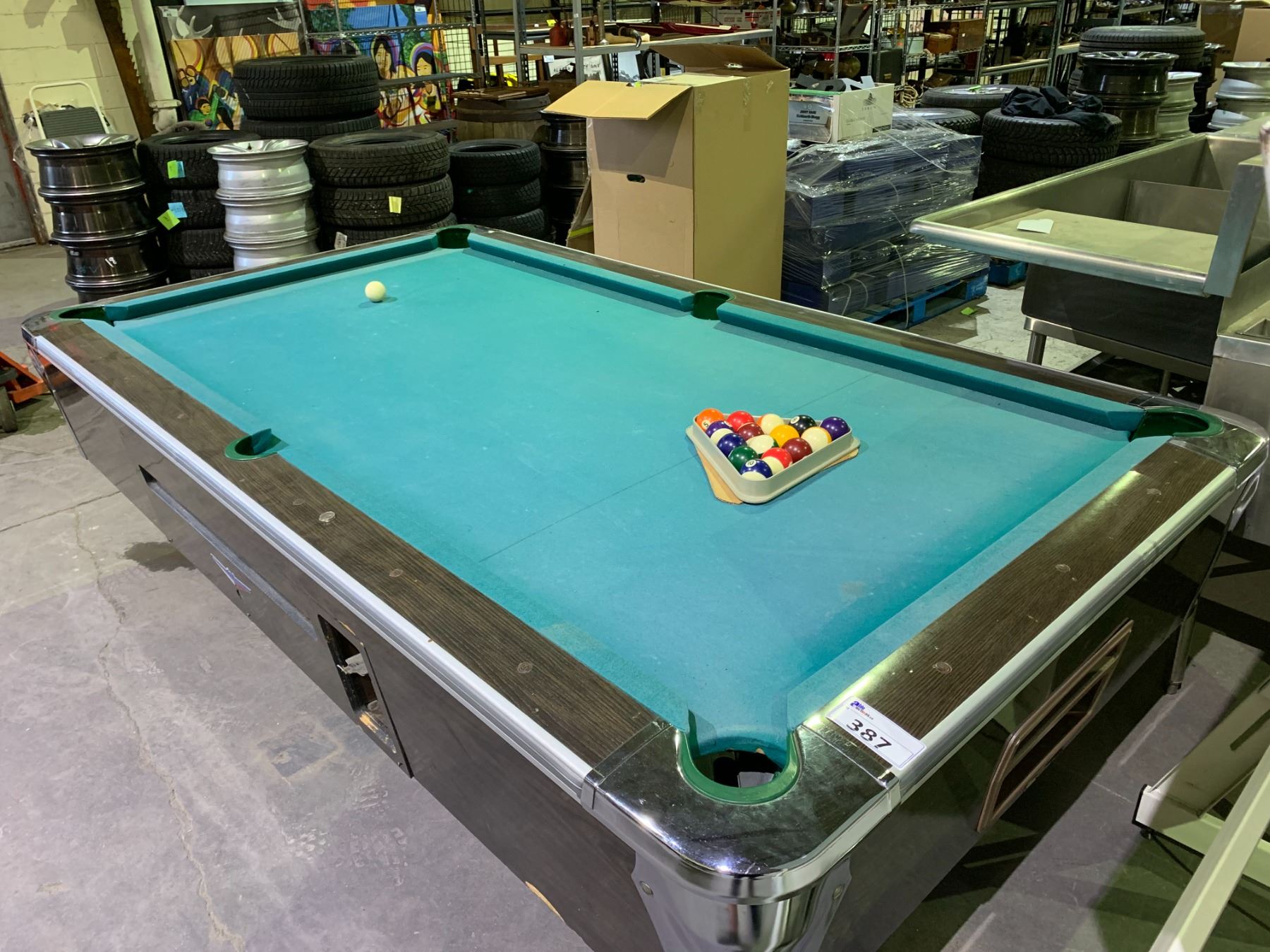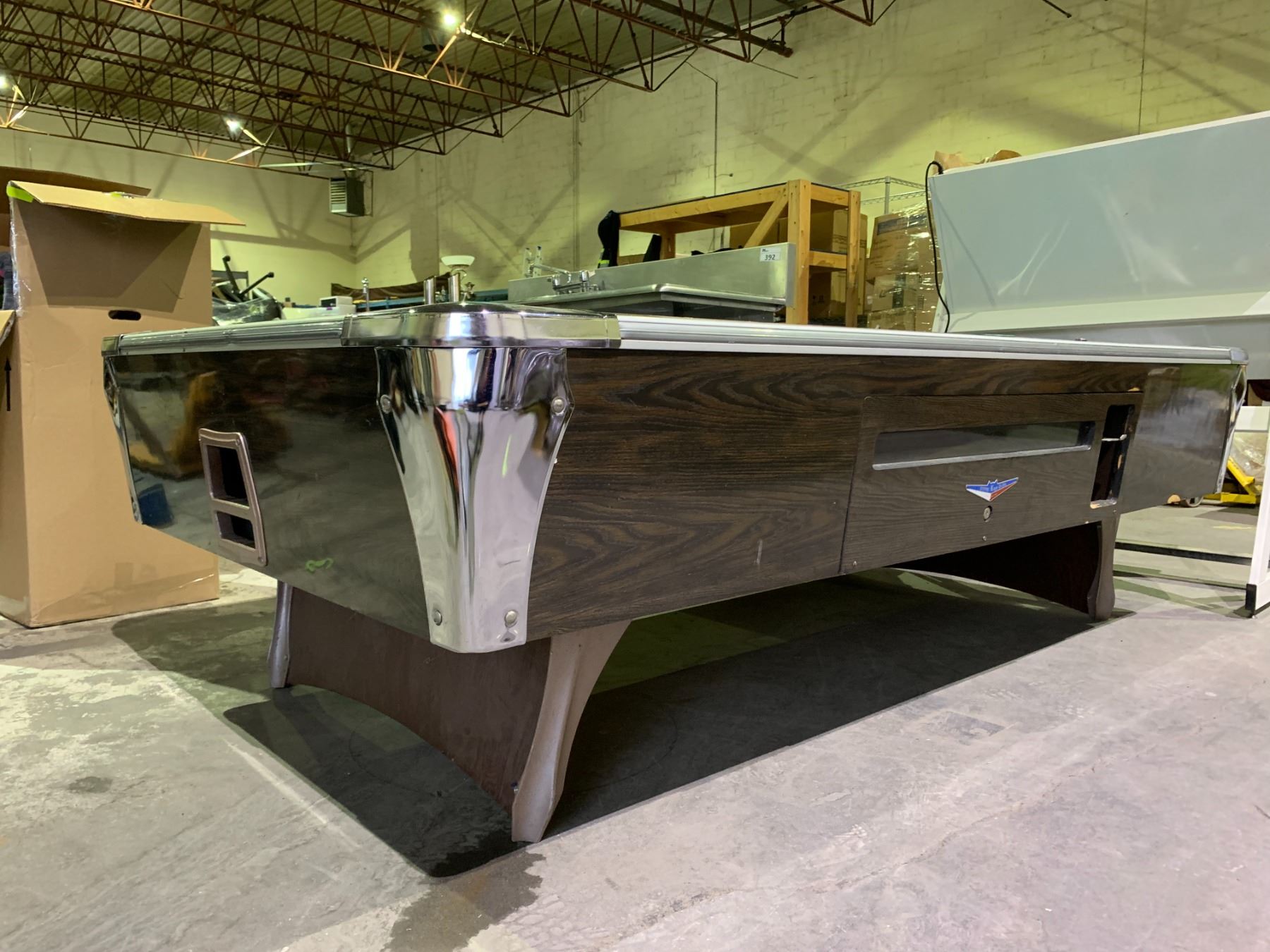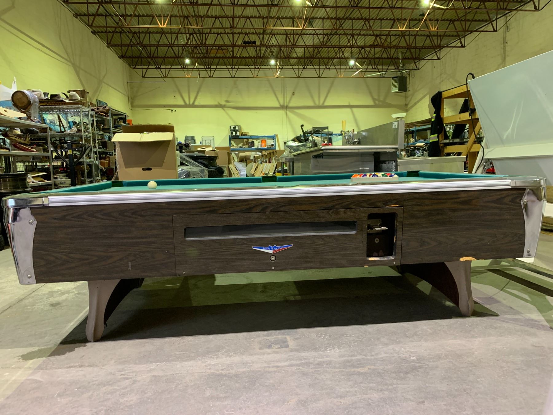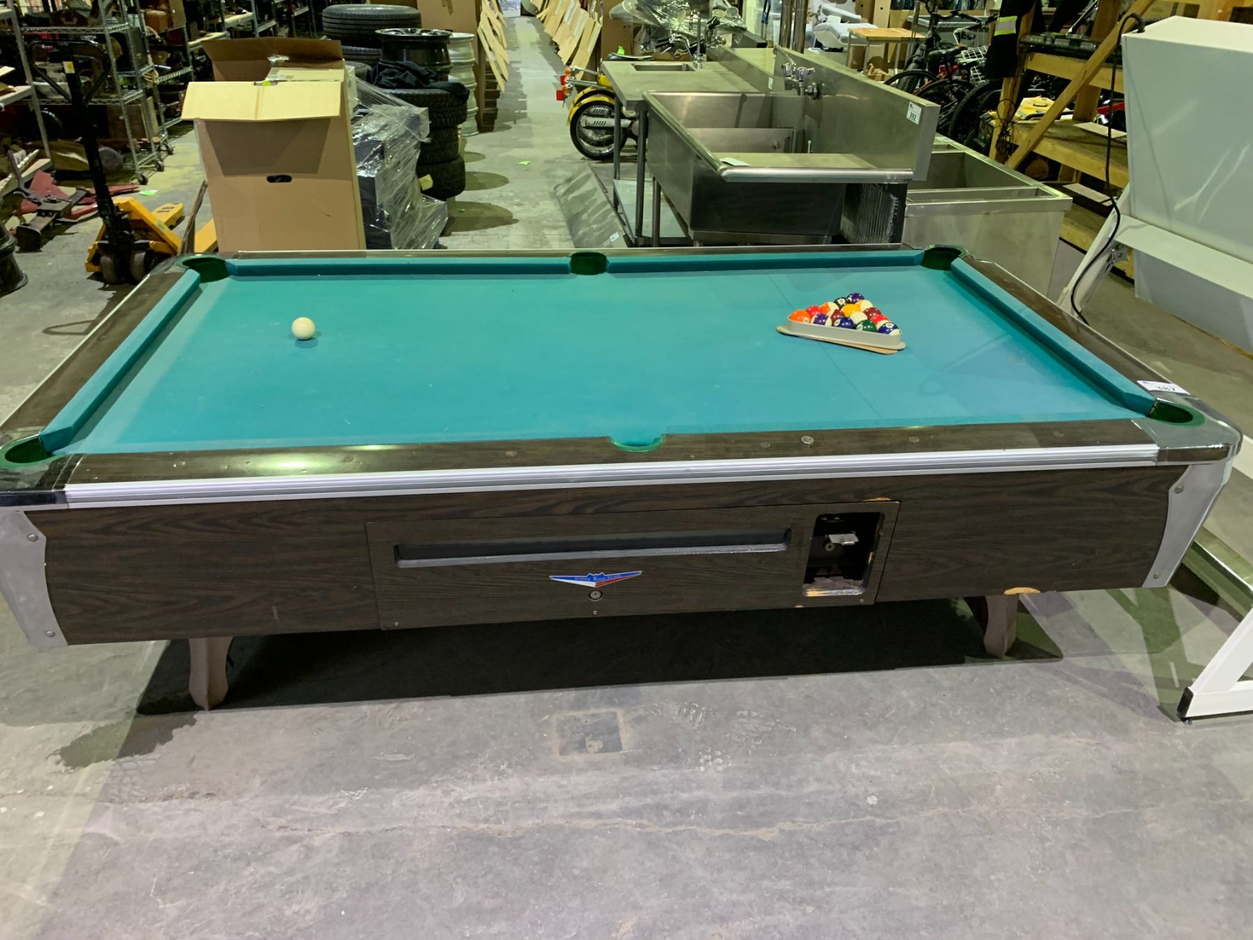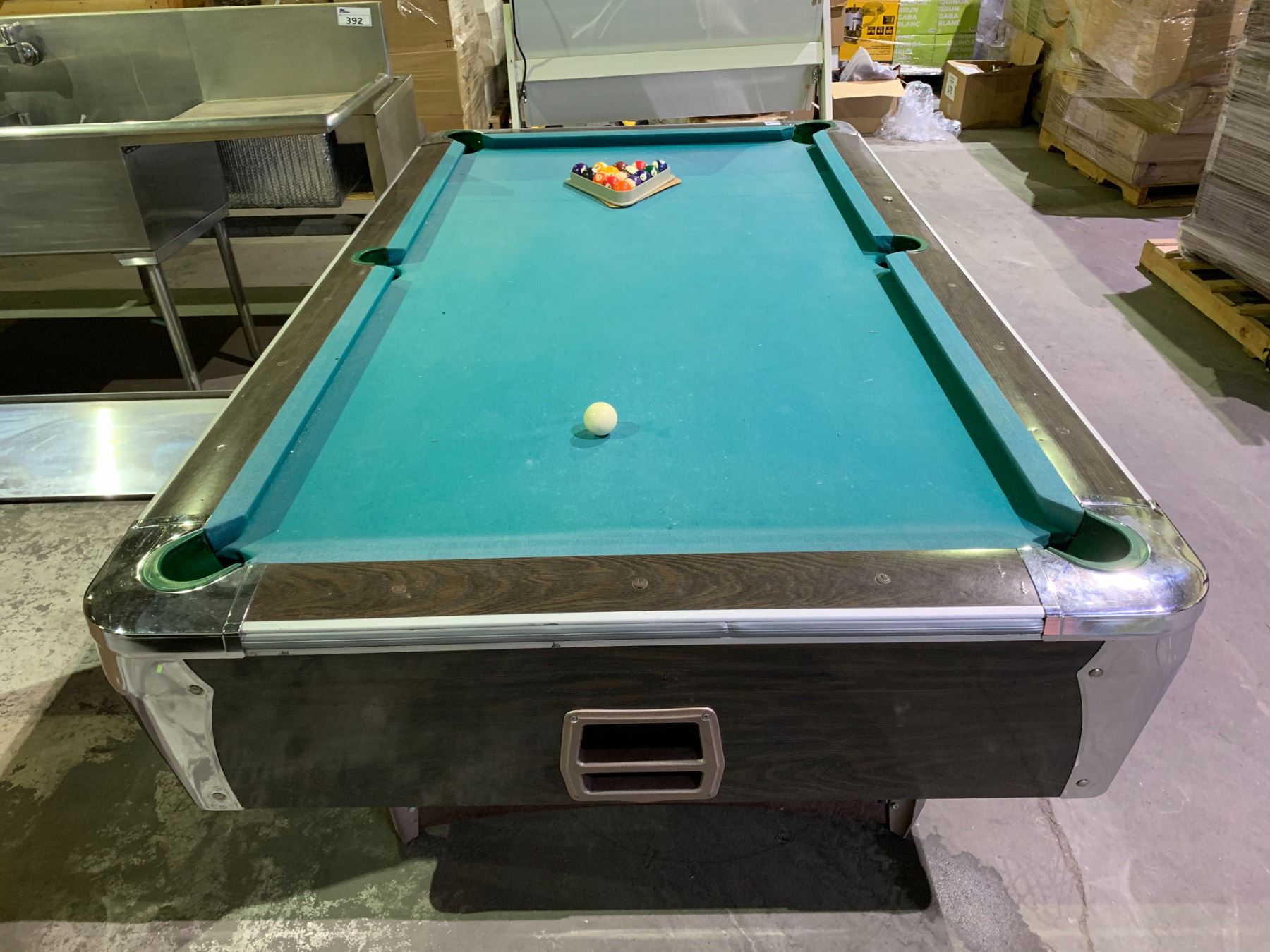 TRUING KAYE COIN OPERATED BILLIARDS TABLE WITH BALLS & TRIANGLE (TAKES QUARTERS)