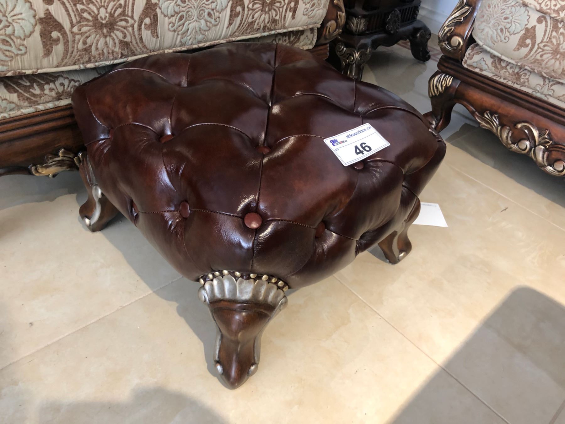 TUFTED LEATHER OTTOMAN