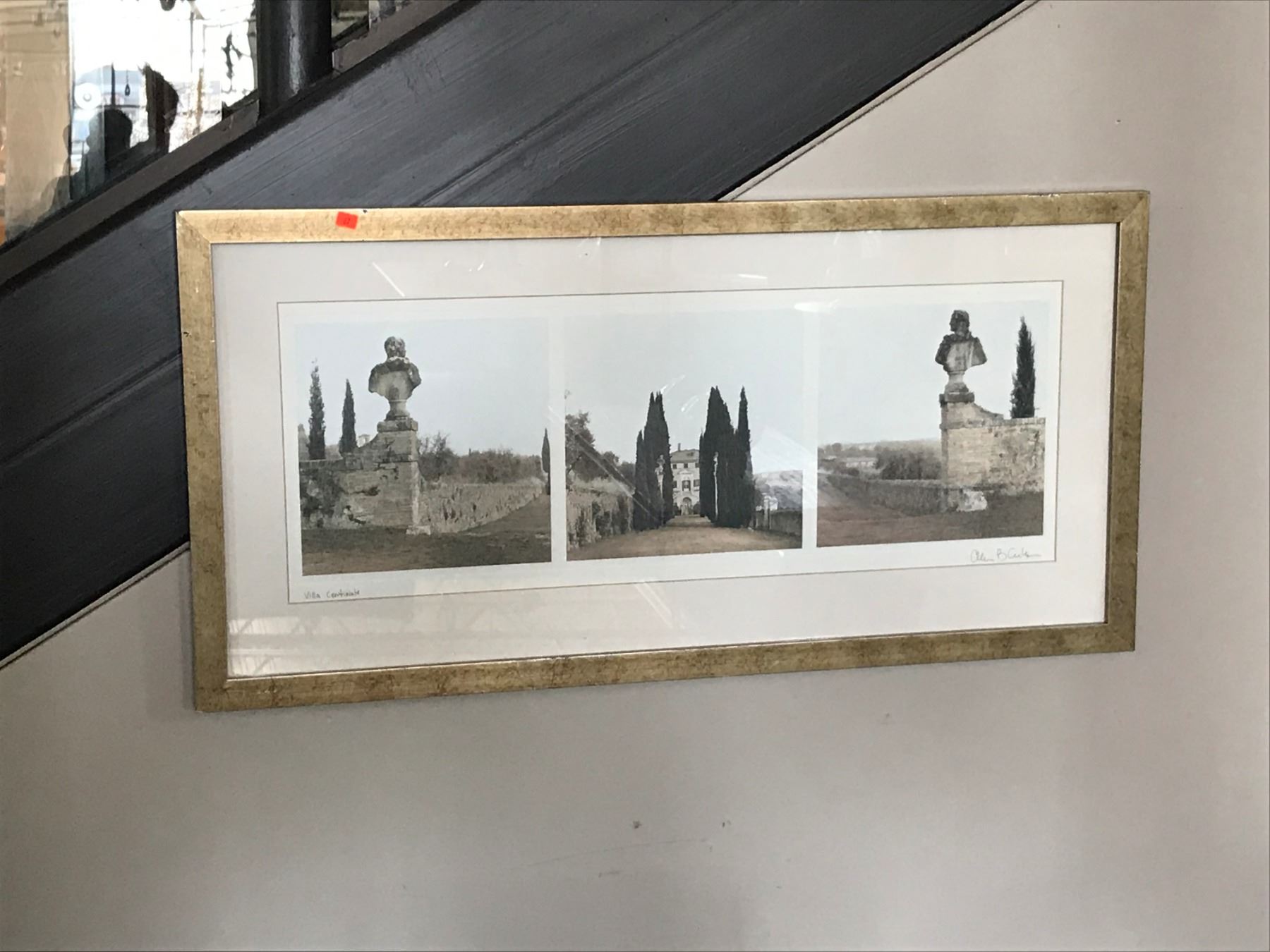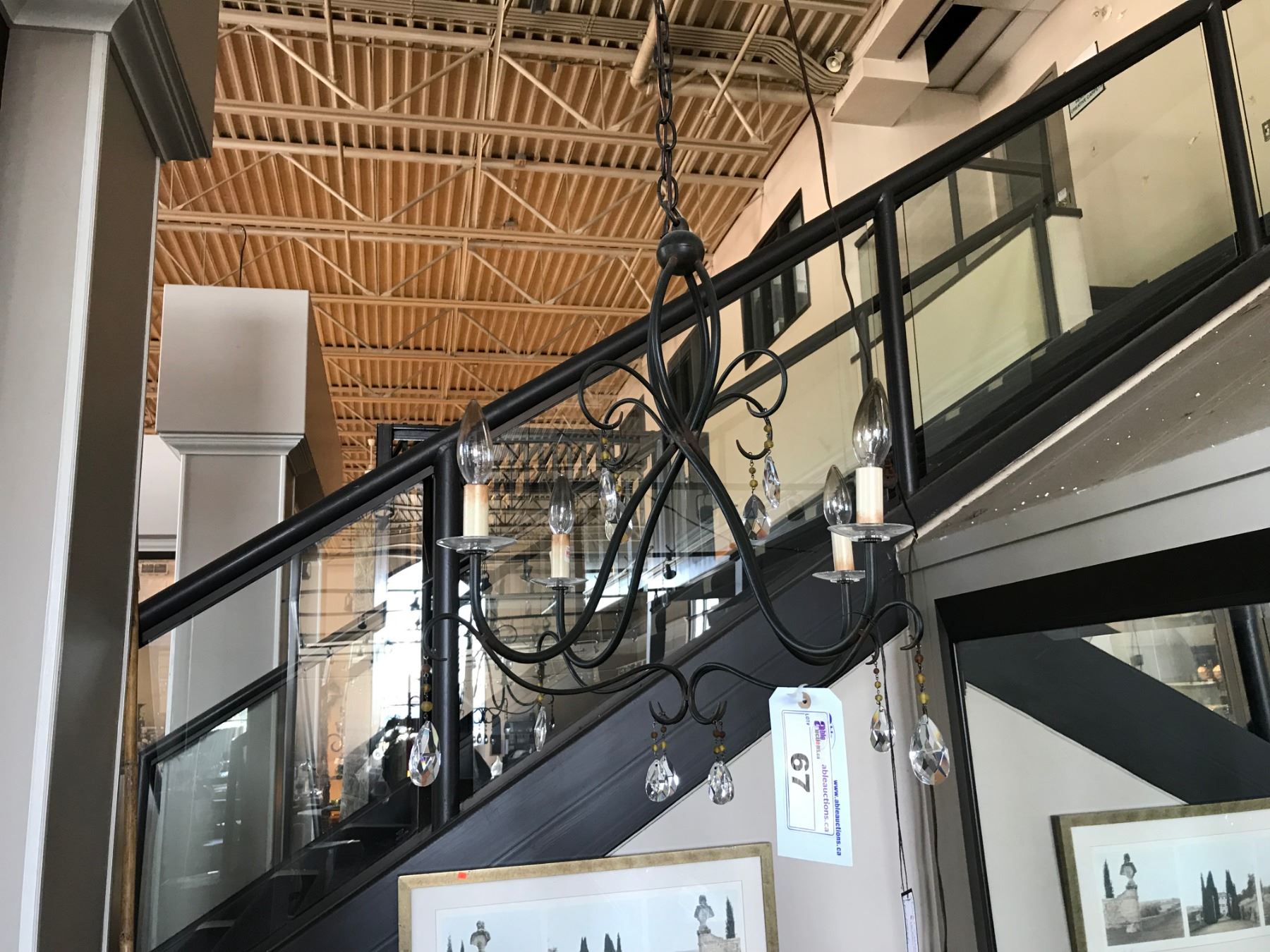 TULA METAL 4 HEAD CHANDELIER, BAMBOO POLE & FRAMED ARTWORK