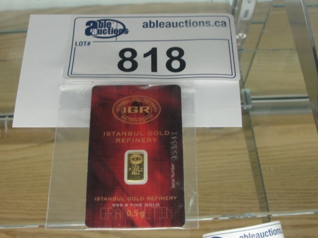 TURKISH MINT .999 SOLID GOLD CERTIFIED AND NUMBERED BAR - TAX EXEMPT