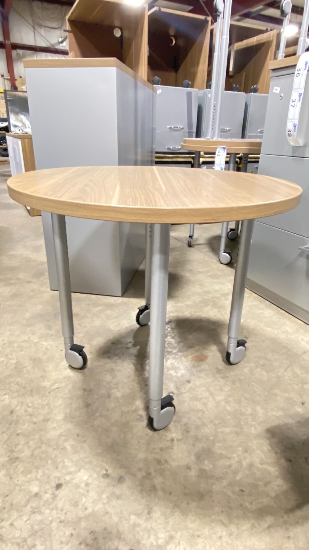 TURNSTONE NATURAL WOOD LOOK 30  ROUND HEIGHT ADJUSTABLE MOBILE MINI TABLE