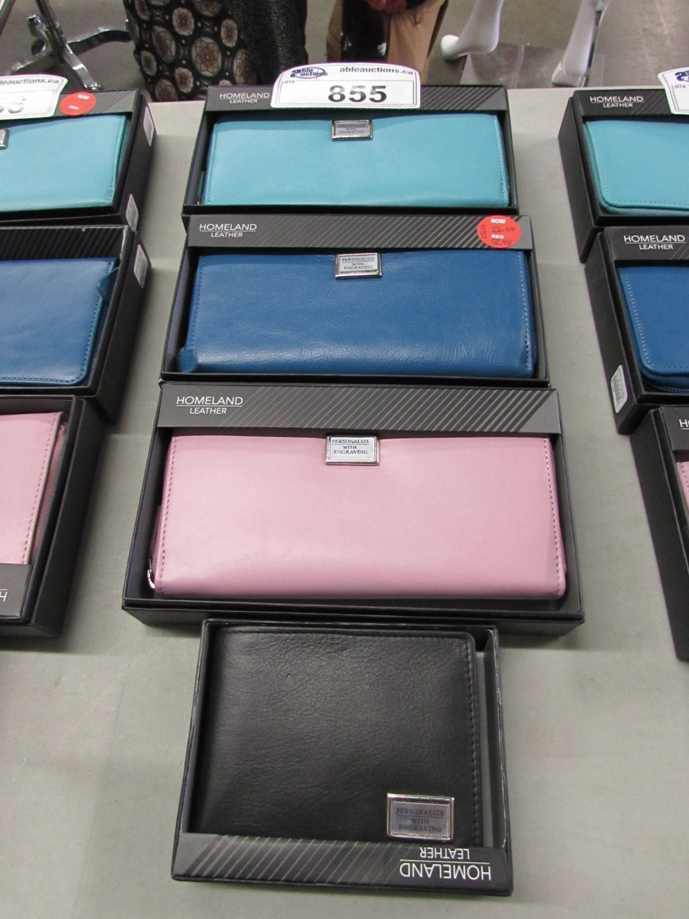 TURQUOISE HOMELAND RFID LEATHER WALLET, BLUE HOMELAND RFID LEATHER WALLET, PINK HOMELAND RFID LEATHER, BLACK HOMELAND RFID LEATHER WALLET (ENGRAVABLE) APPROX RP $250