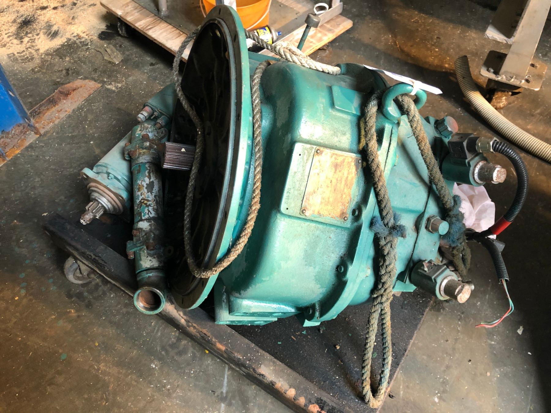 TWIN  DISC MODEL MG 5075 A MARINE TRANSMISSION COMES WITH CART AND PICTURED PARTS, CONDITION