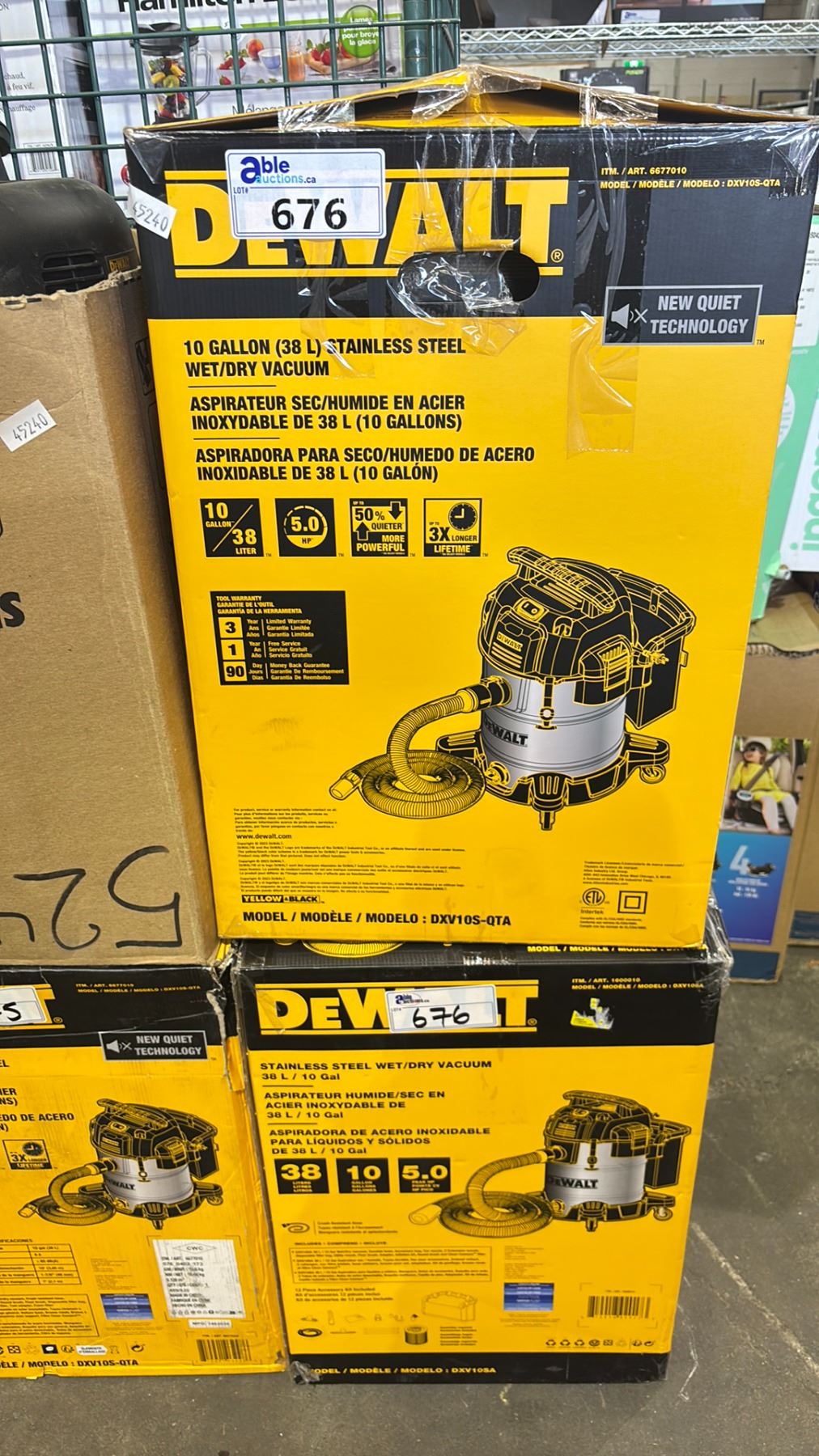 TWO DEWALT 10 GALLON STAINLESS STEEL WET/DRY VACUUMS *WORKING CONDITION UNKNOWN/MAY BE MISSING PARTS AND/OR PIECES*