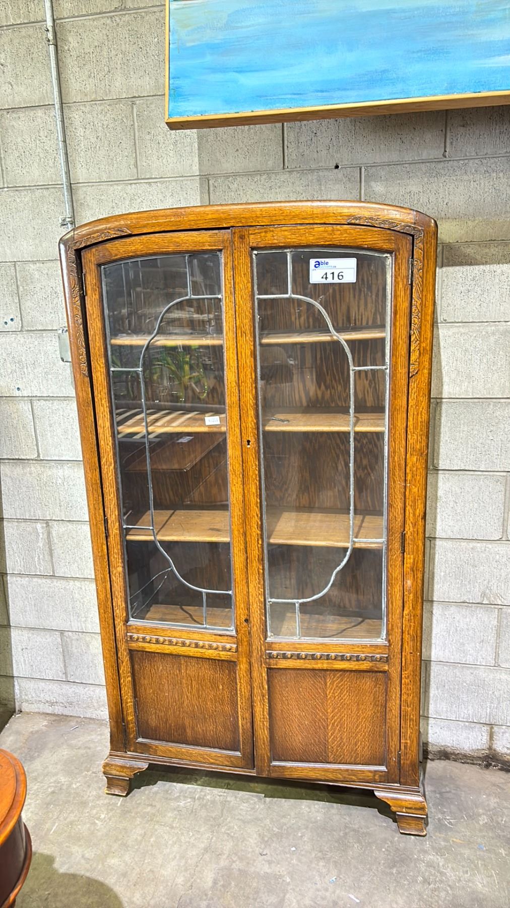 TWO DOOR ANTIQUE GLASS DOOR CABINET - APPROX. 35"W X 10.5"D X 65"H