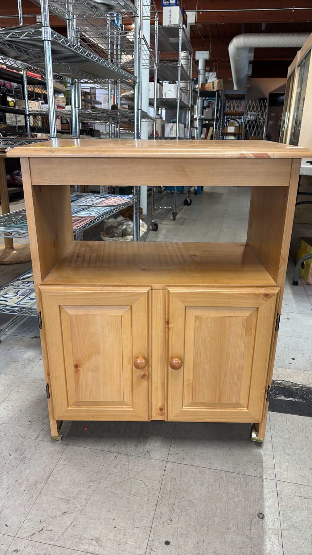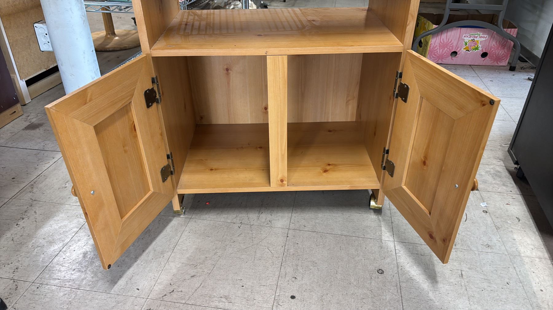 TWO DOOR MOBILE MICROWAVE STAND *ONE WHEEL NEEDS REPAIR*