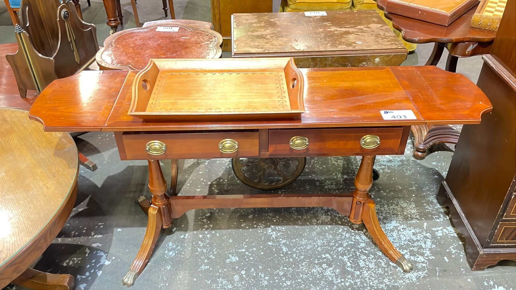 TWO DRAWER ENTRYWAY TABLE WITH FLIP UP SIDES & A WOODEN TRAY