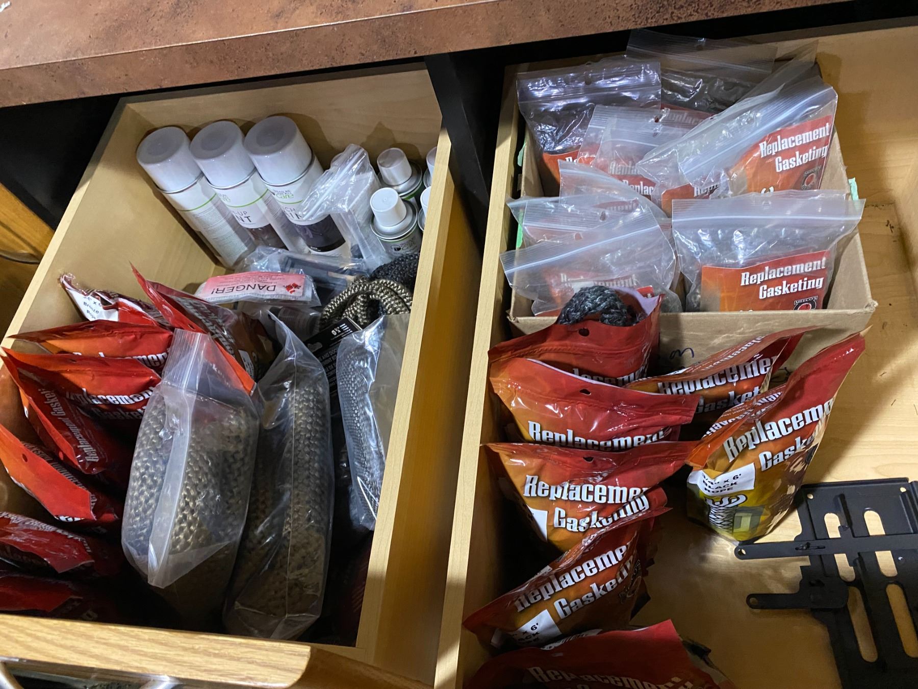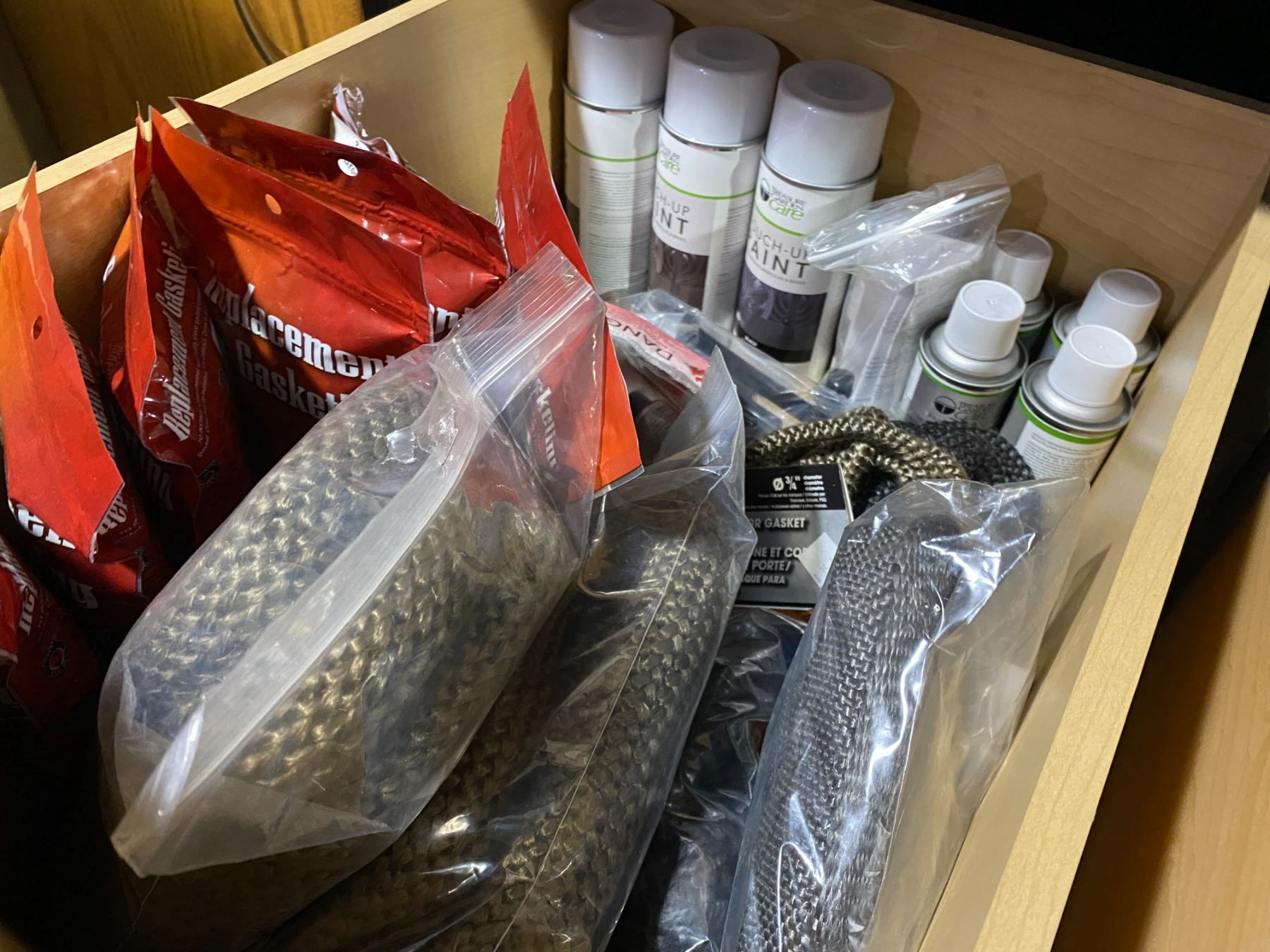 TWO DRAWERS FULL OF ASST REPLACEMENT GASKETING, ASST TOUCH UP PAINT