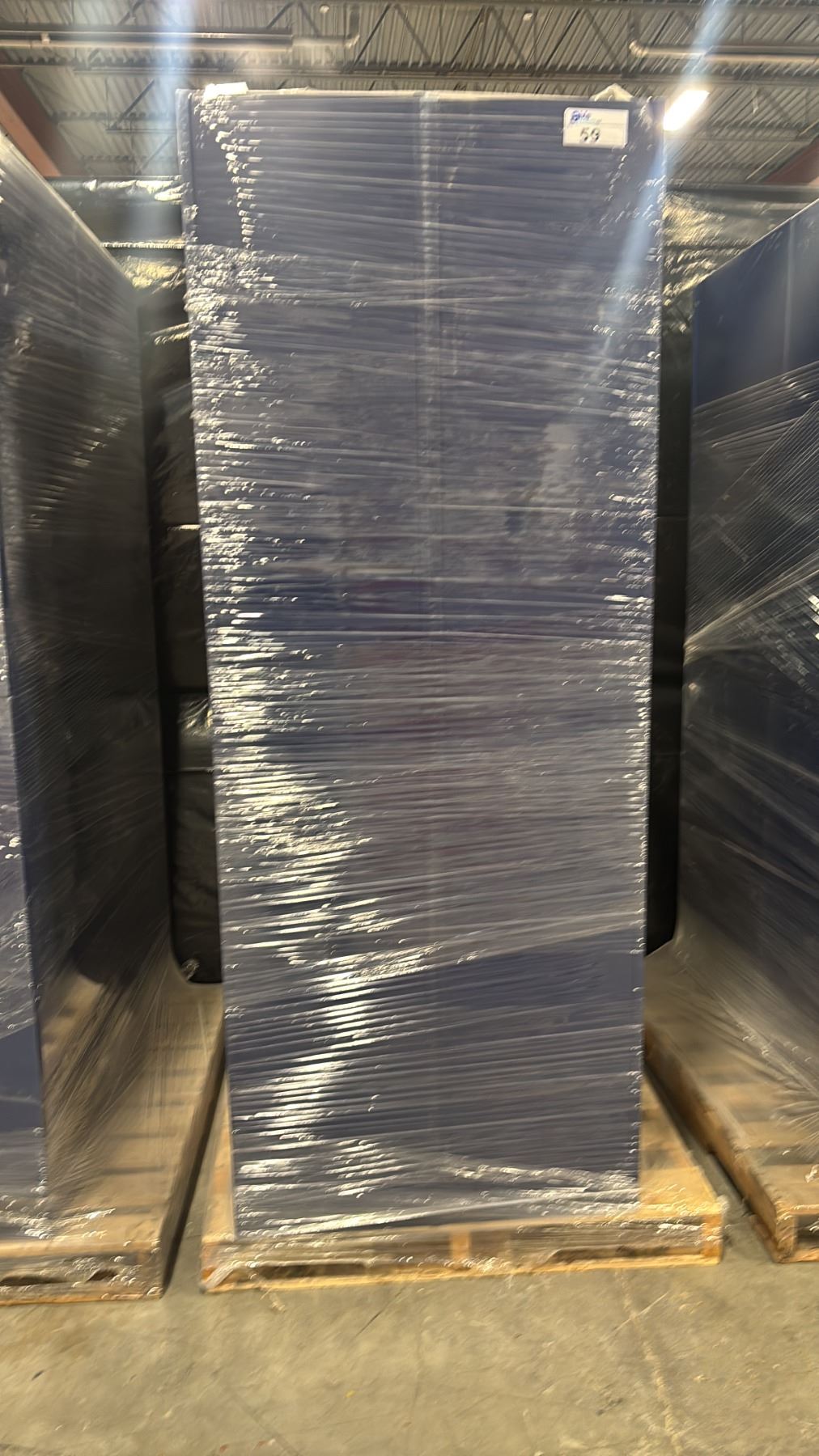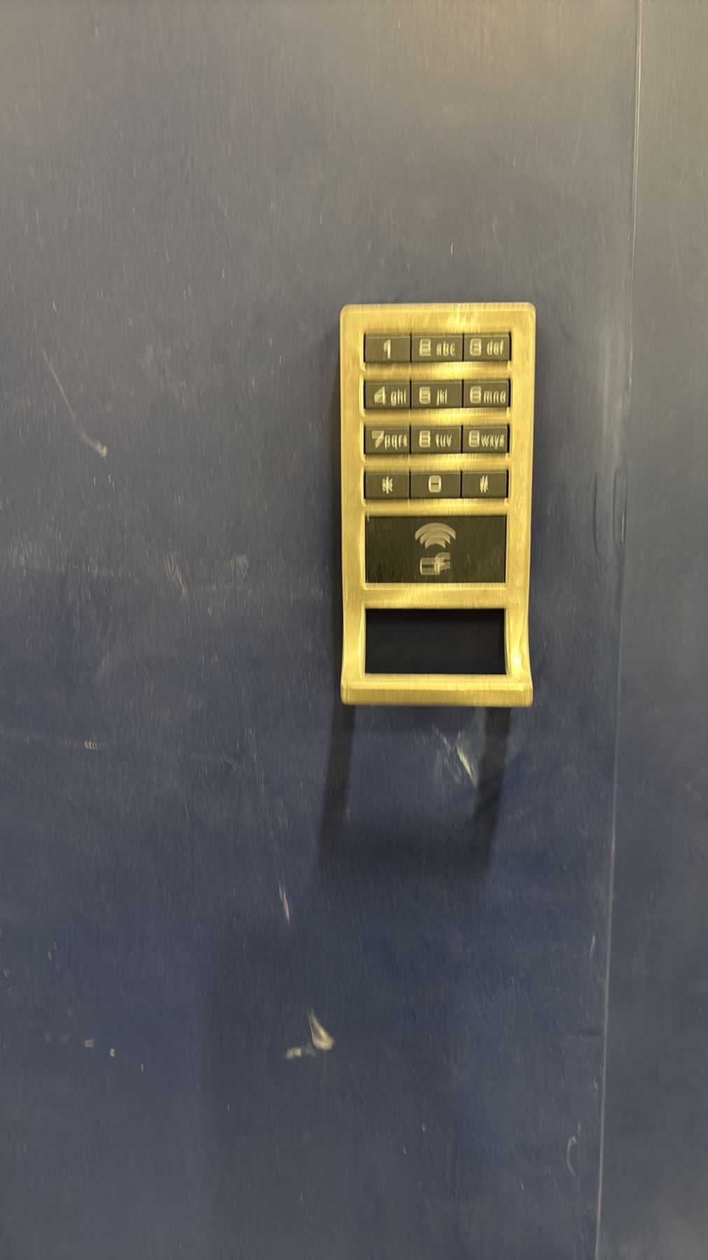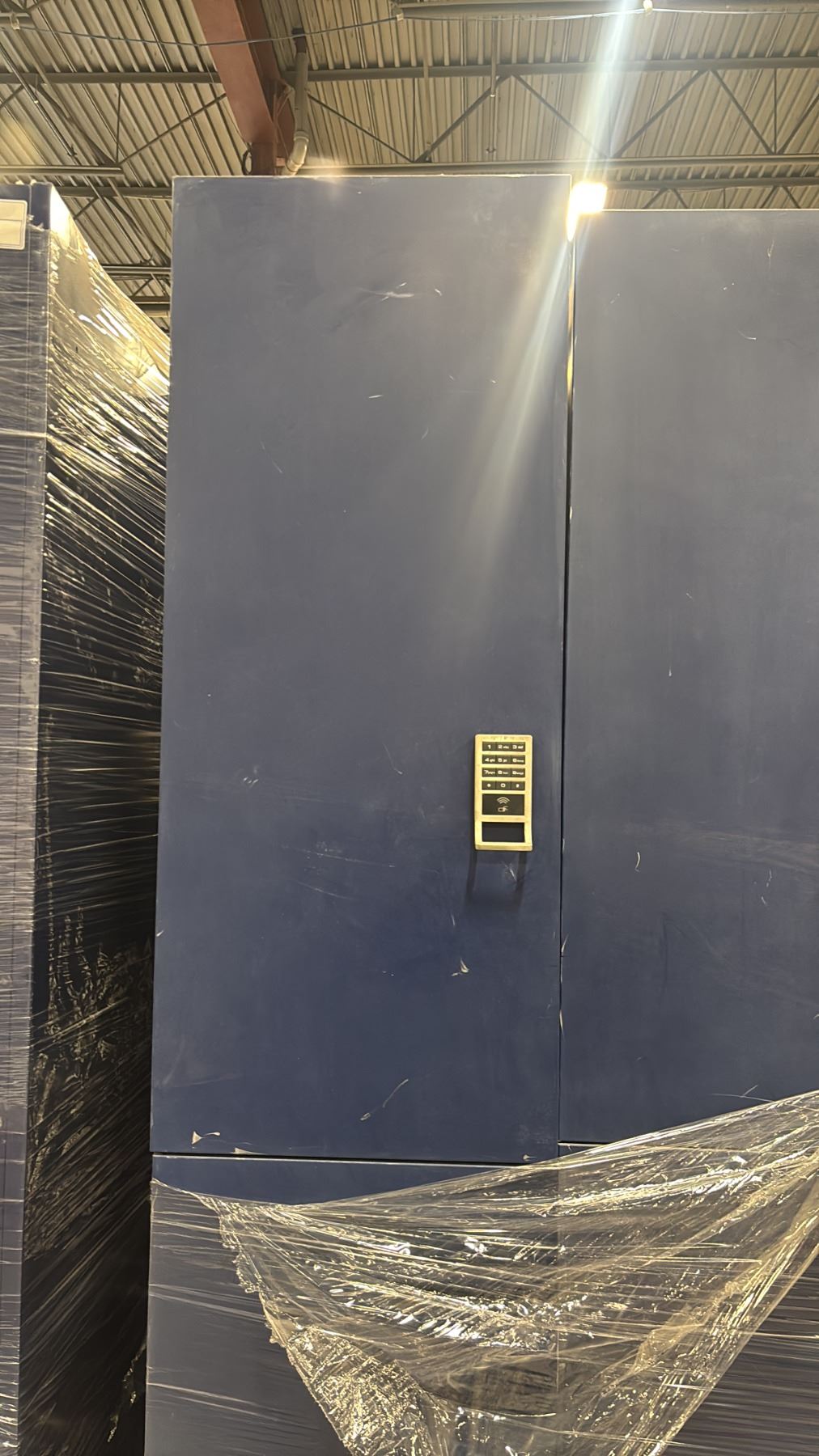 TWO FOUR SECTION DARK BLUE STORAGE LOCKERS WITH ELECTRONIC PASSCODE ENTRY