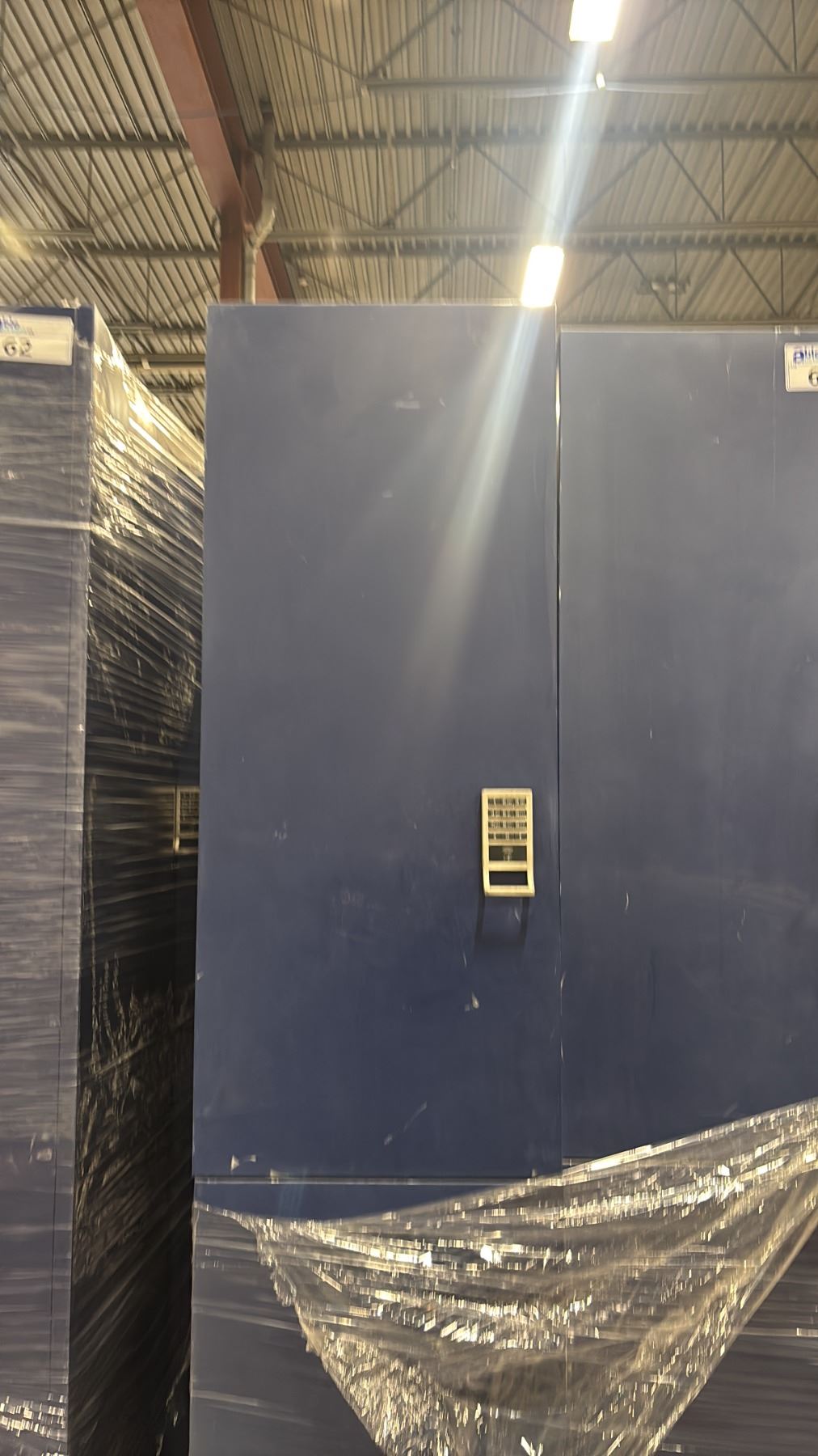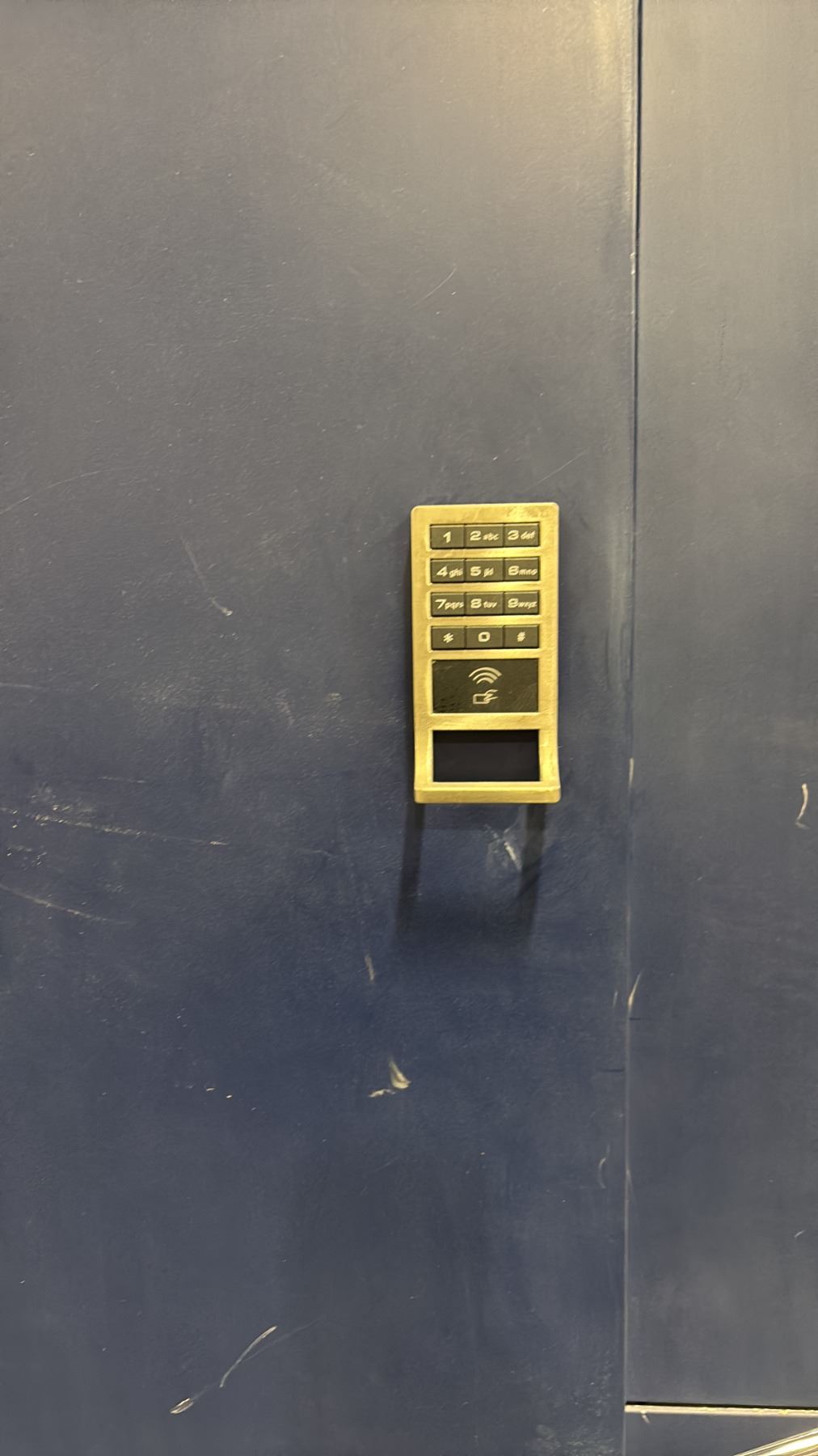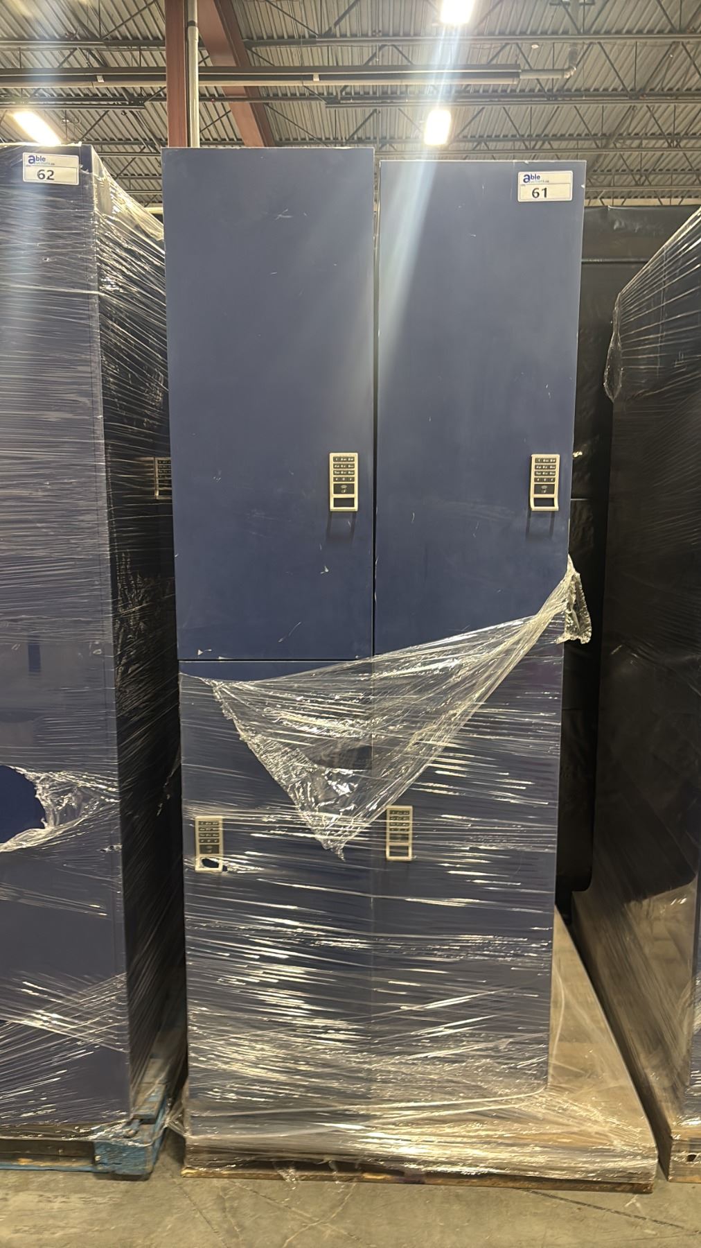 TWO FOUR SECTION DARK BLUE STORAGE LOCKERS WITH ELECTRONIC PASSCODE ENTRY