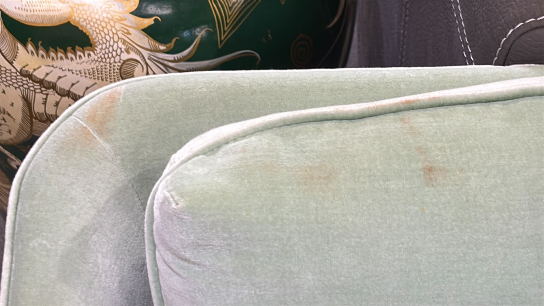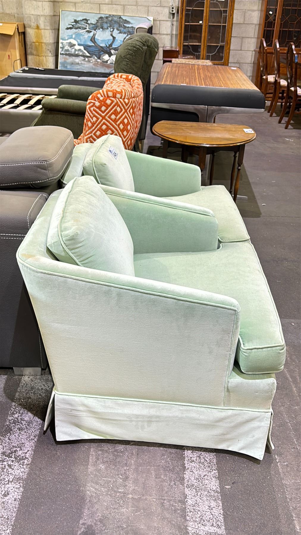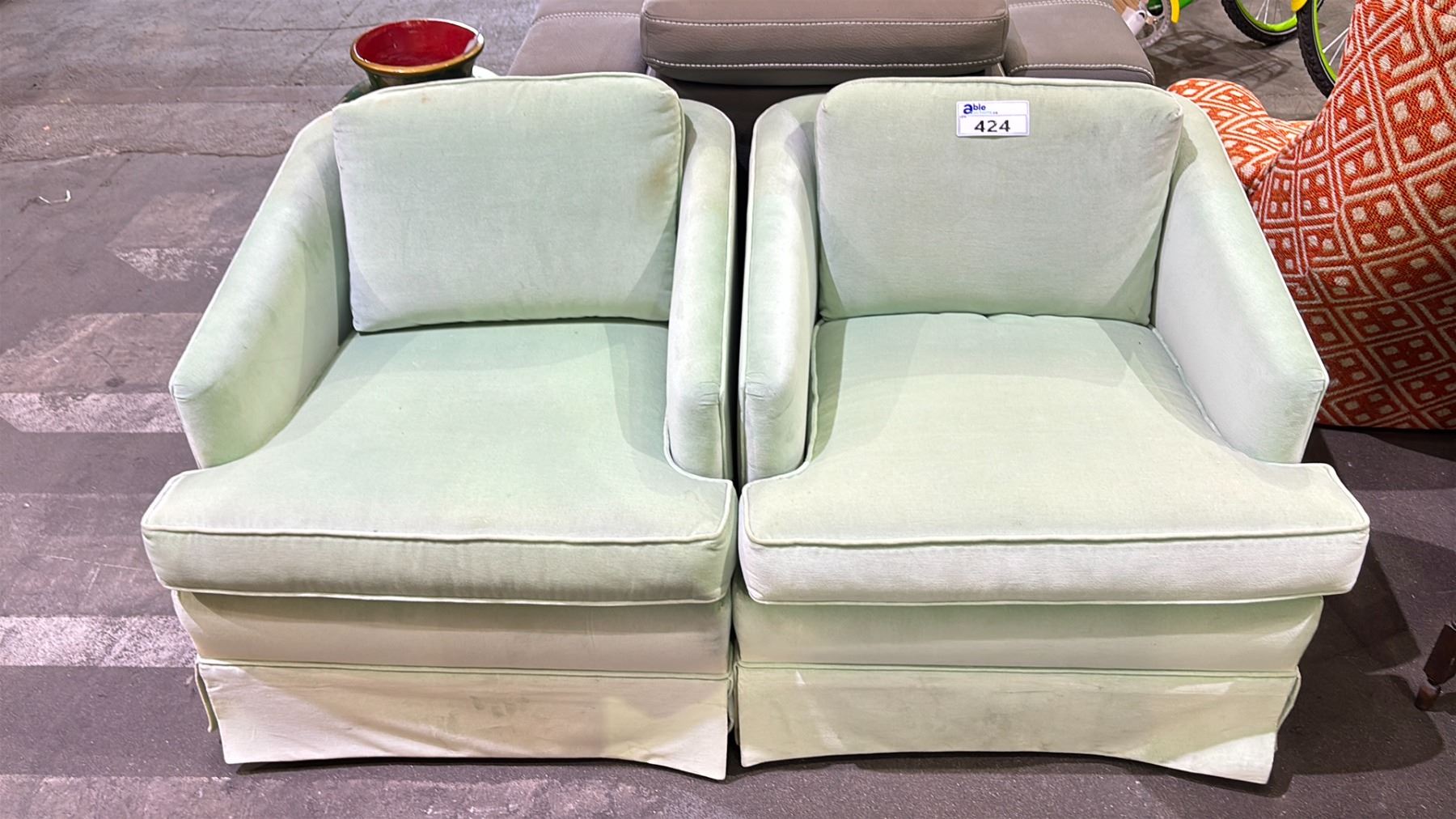 TWO GREEN UPHOLSTERED ARMCHAIRS