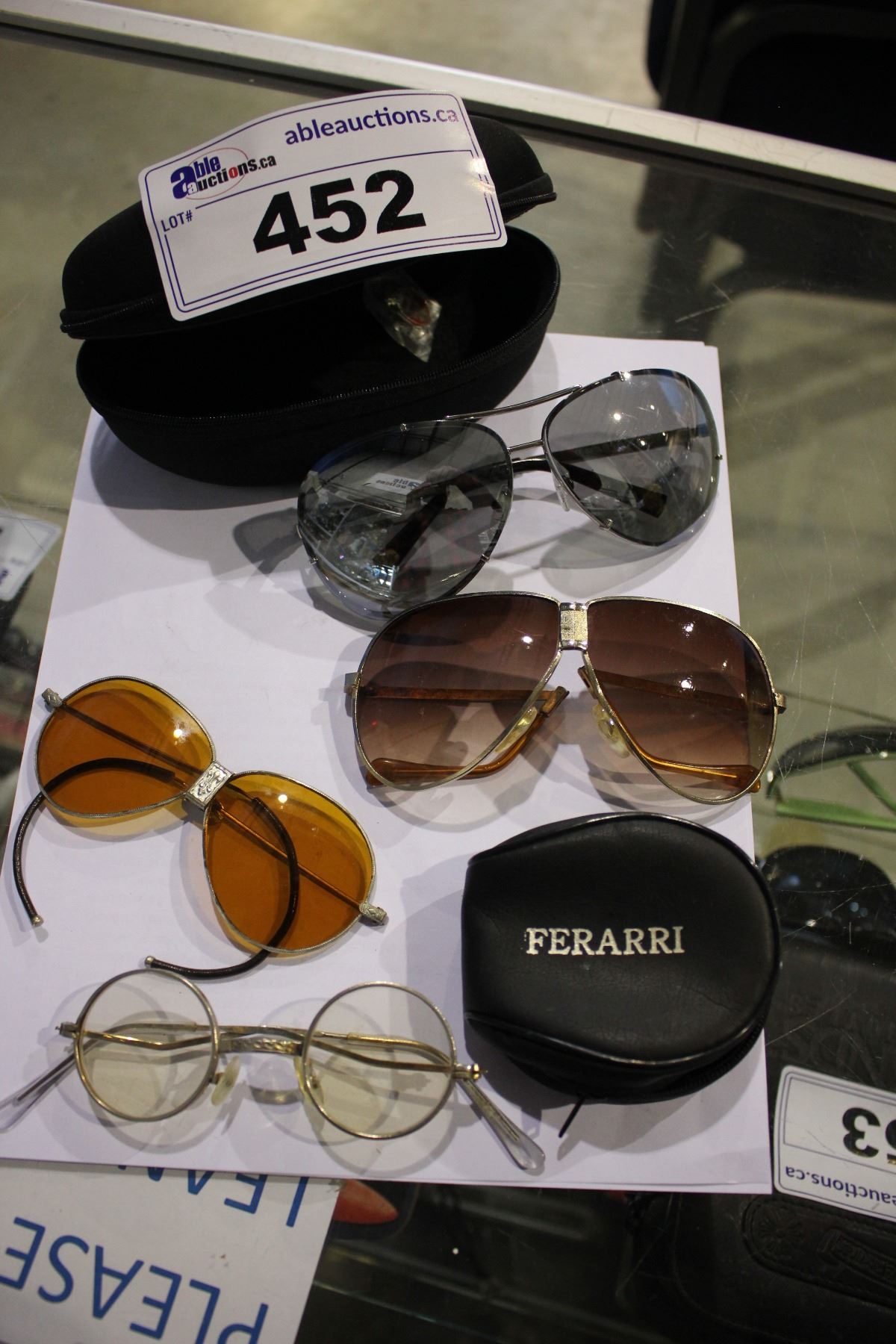 TWO PAIRS OF VINTAGE SUNGLASSES, PAIR OF DESIGNER SUNGLASSES AND PAIR OF ANTIQUE GLASSES