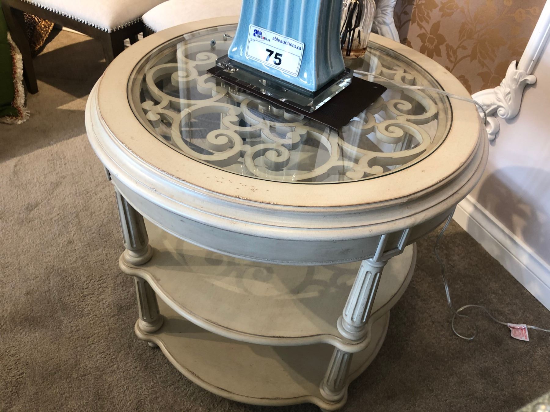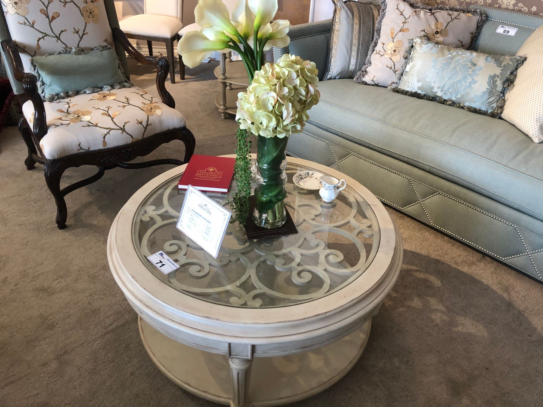 TWO PC. GLASS TOP COFFEE TABLE SET WITH COFFEE AND END TABLES. RETAIL $3,000.00