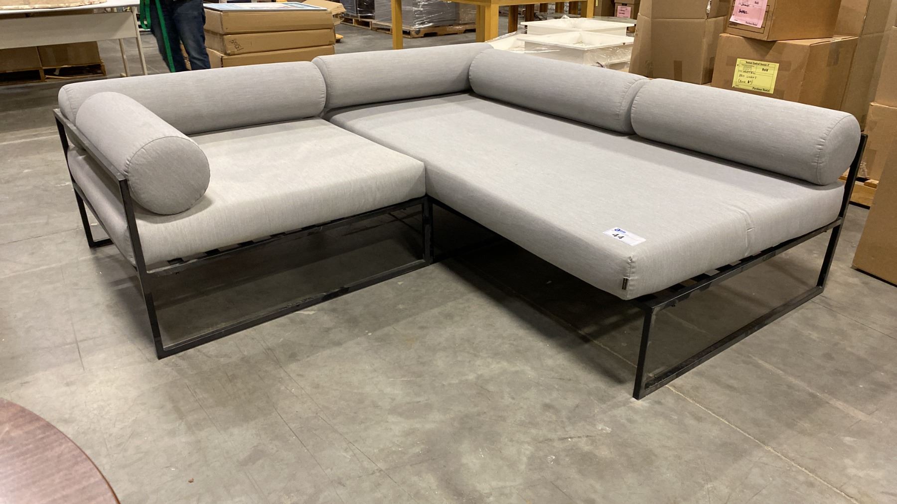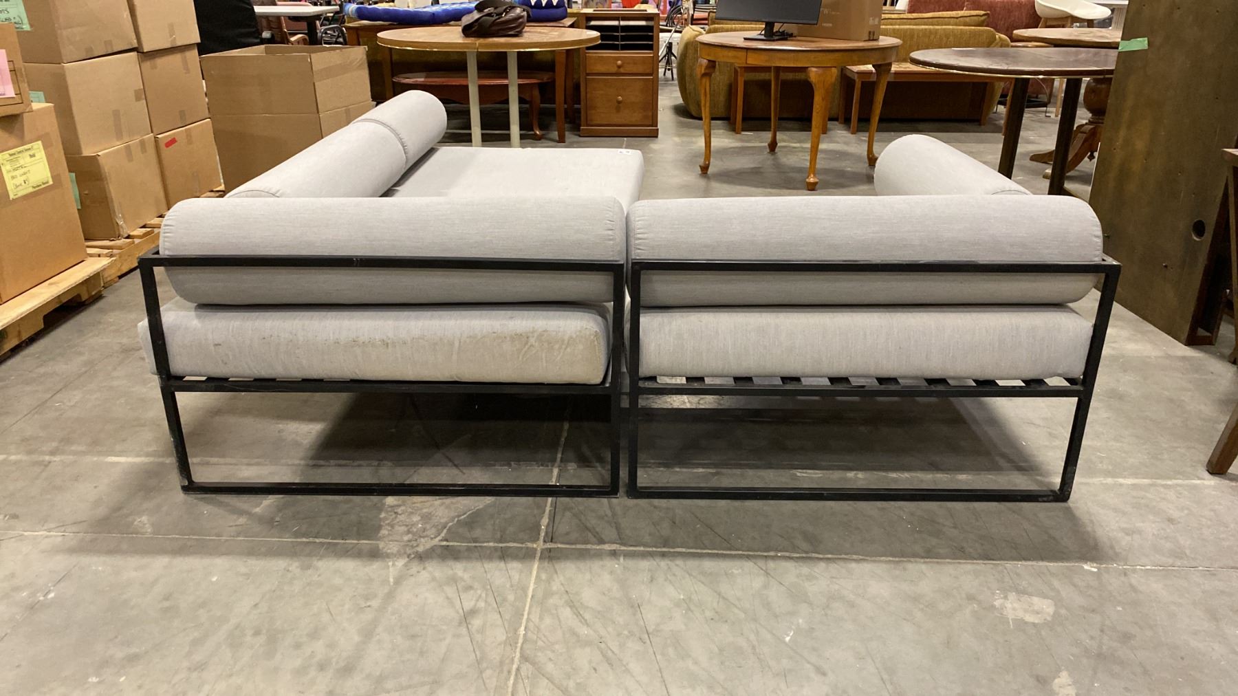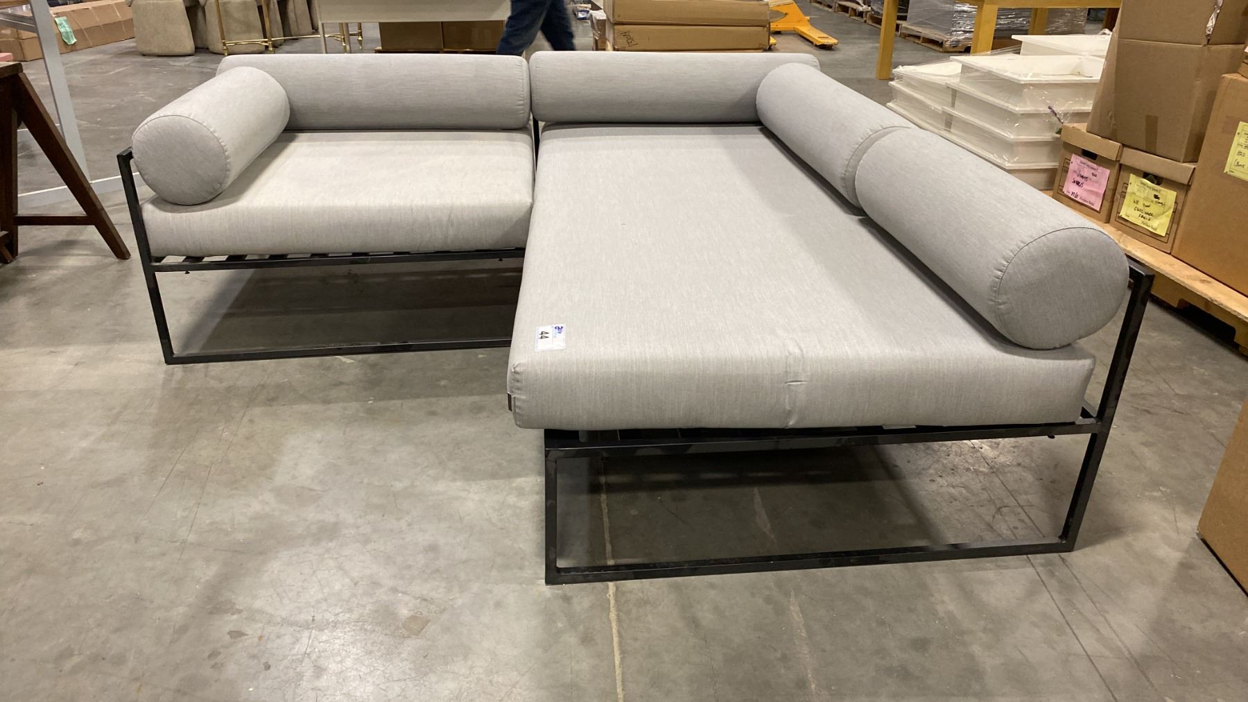 TWO PIECE METAL OUTDOOR PATIO LOUNGER SET WITH GREY CUSHIONS