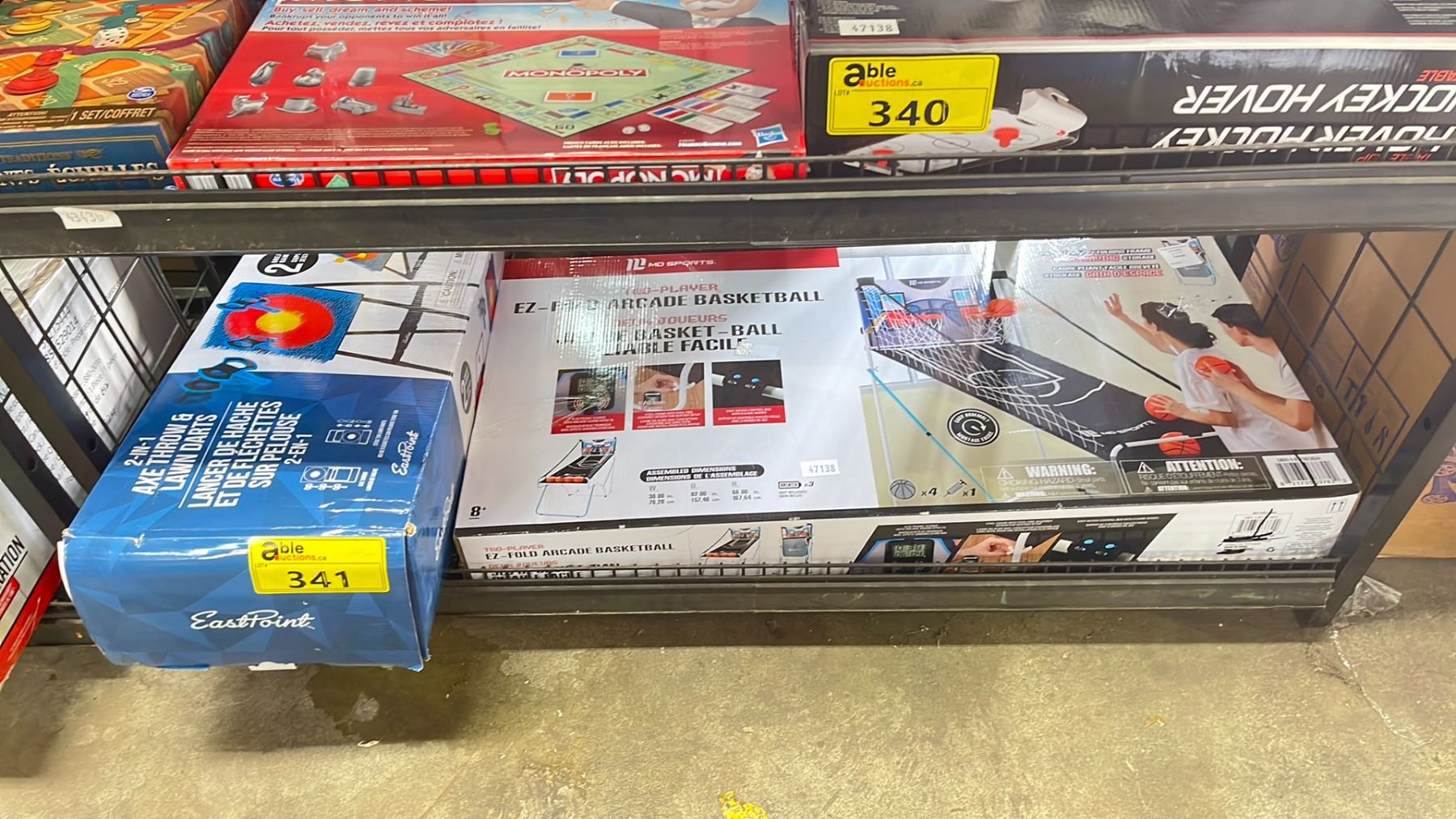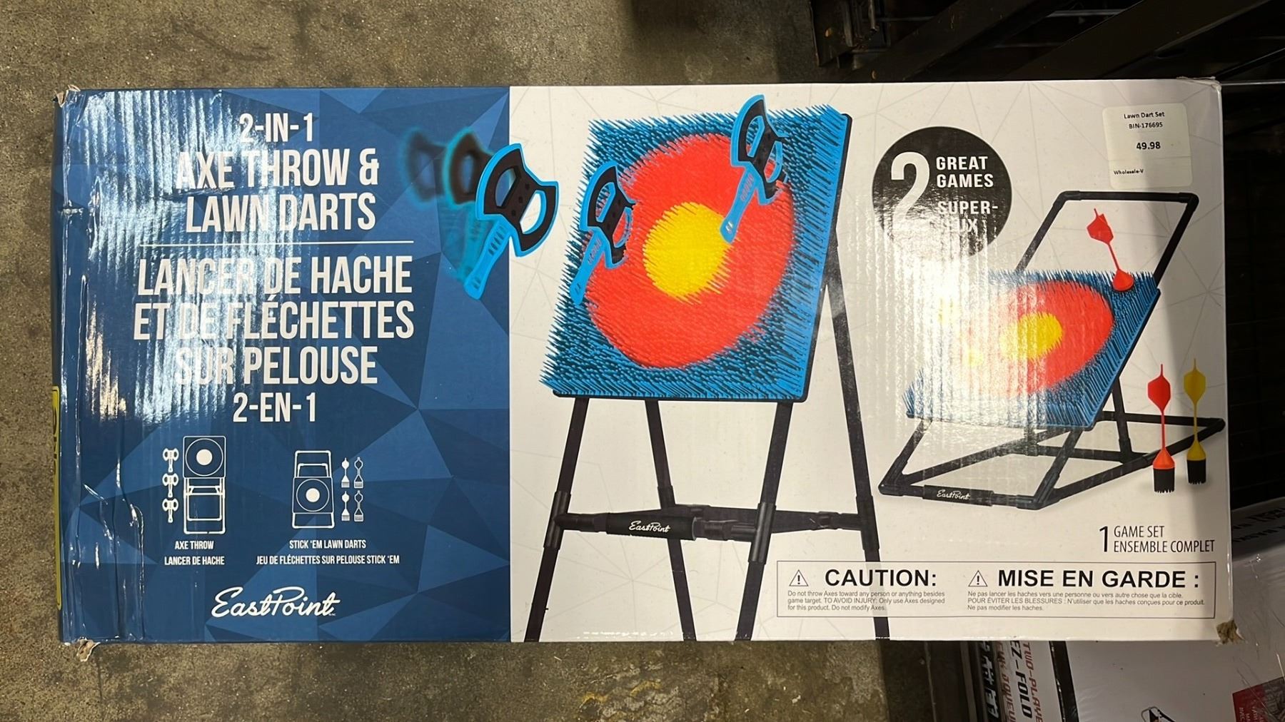 TWO PLAYER EZ FOLD ARCADE BASKETBALL & AXE THROWING + LAWN DART GAME