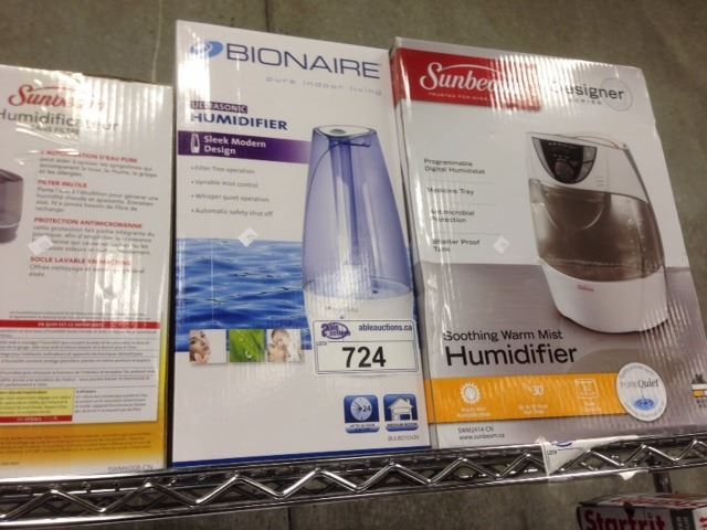 TWO SHELF LOTS OF HOUSEOLD ITEMS INCLUDING HUMIDIFIERS, SEAL A MEAL, ETC.