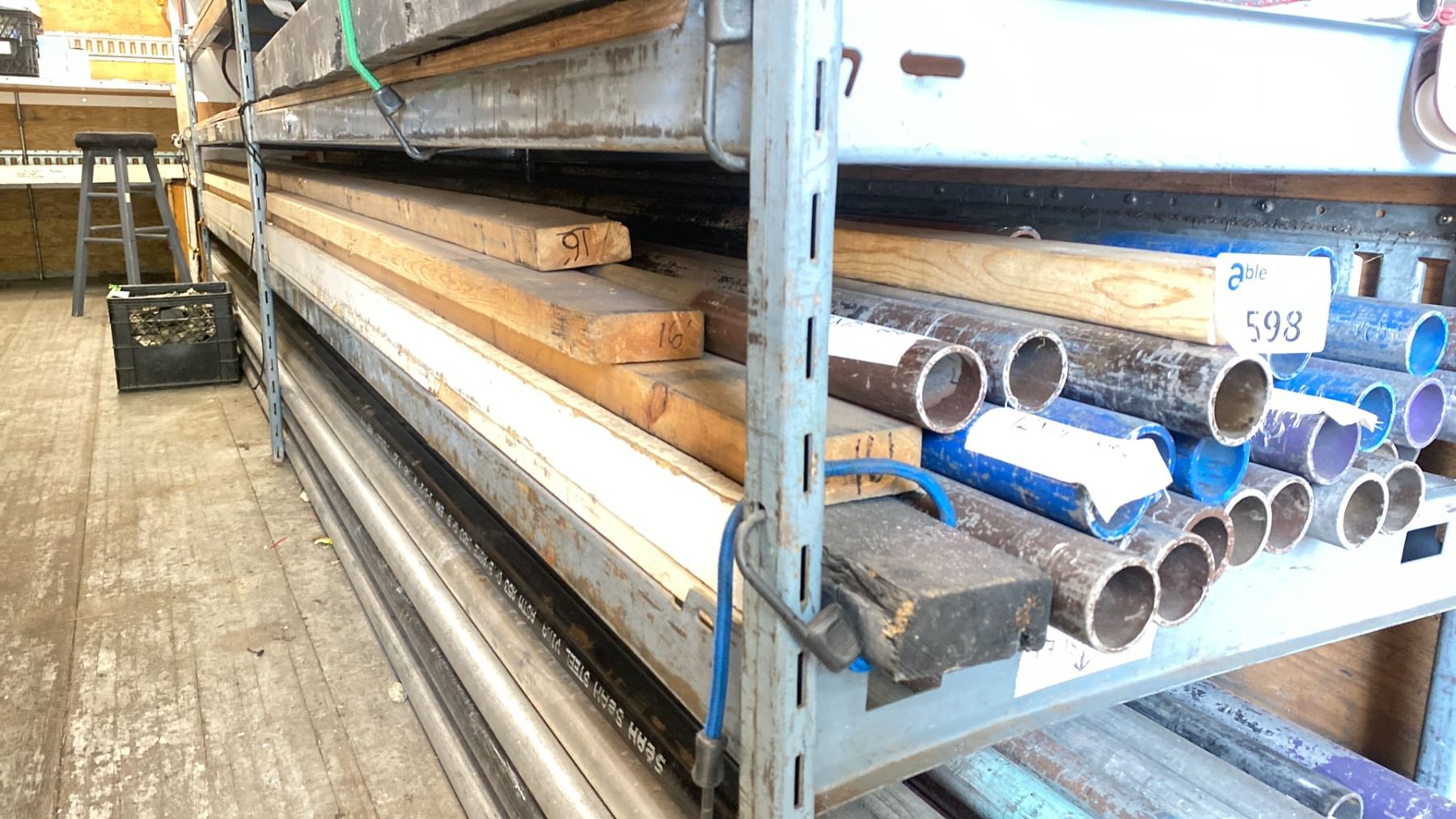 TWO SHELVES OF ALUMINUM PIPING *APPROX* 13-15' 12-14' 3-16' 8-12' 1-11' 5-10'