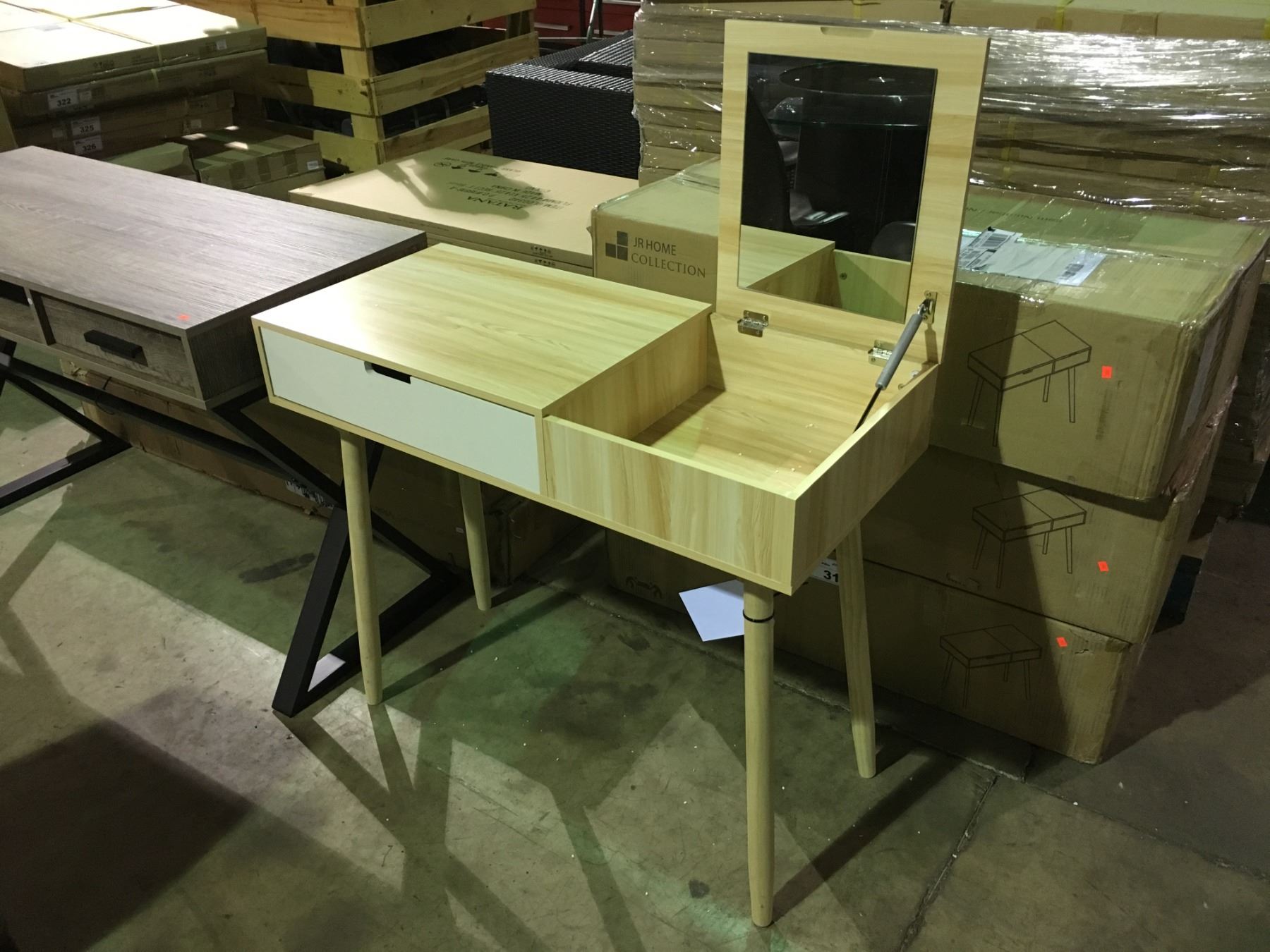 TWO TONE VANITY / DESK D16  X W36  X H30  WITH FLIP UP MIRROR, STORAGE AND DRAWER