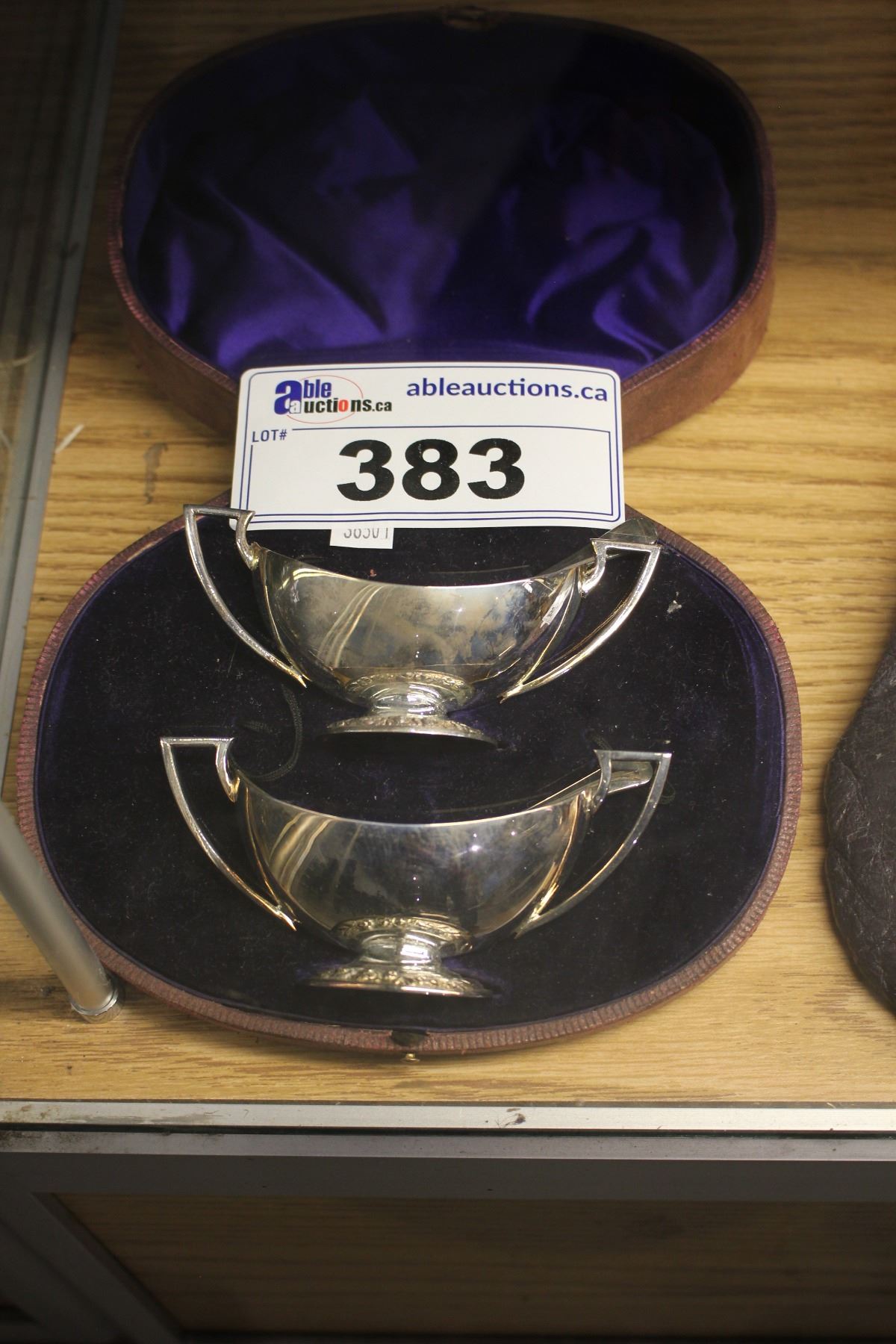 TWO VINTAGE SUGAR BOWLS WITH SPOONS IN CASE