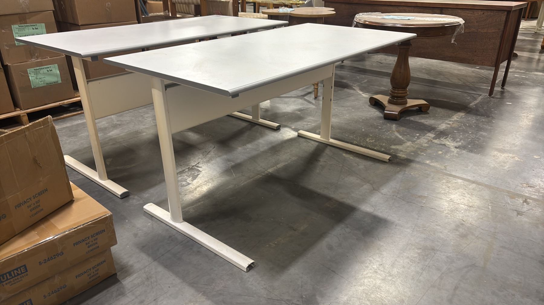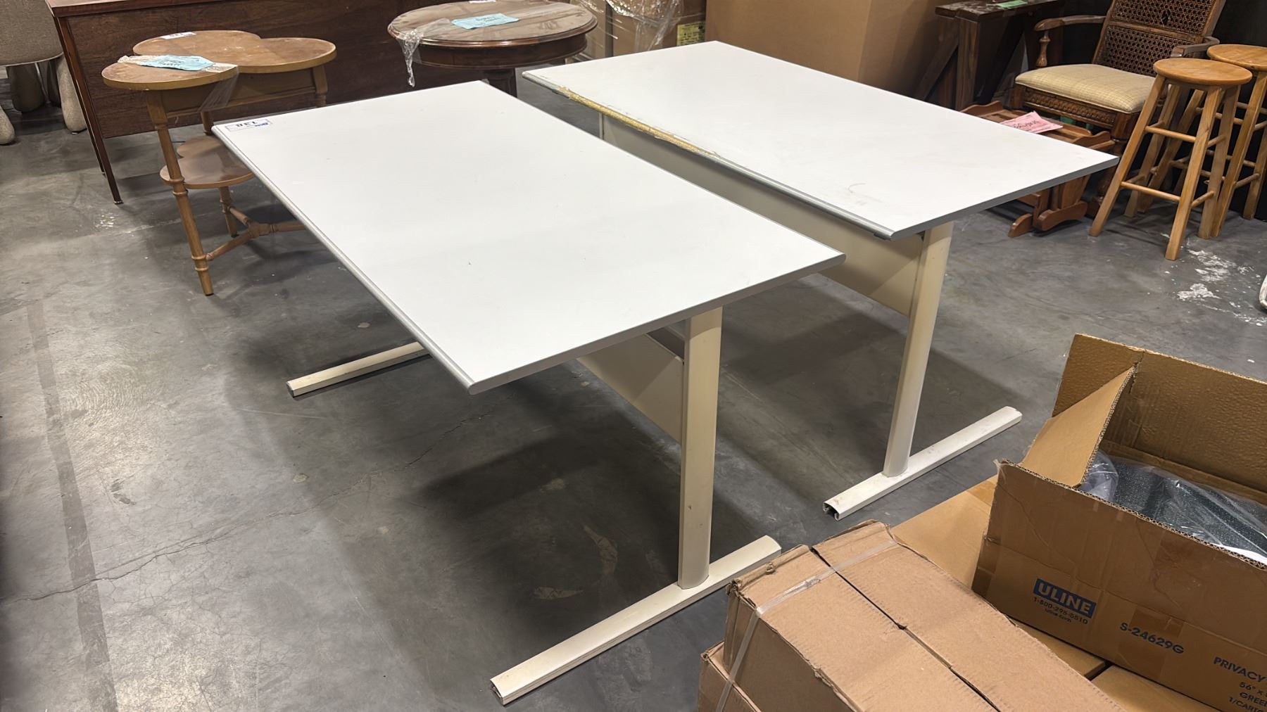 TWO WHITE WORKBENCHES - APPROX. 55"W X 29"D X 29"H