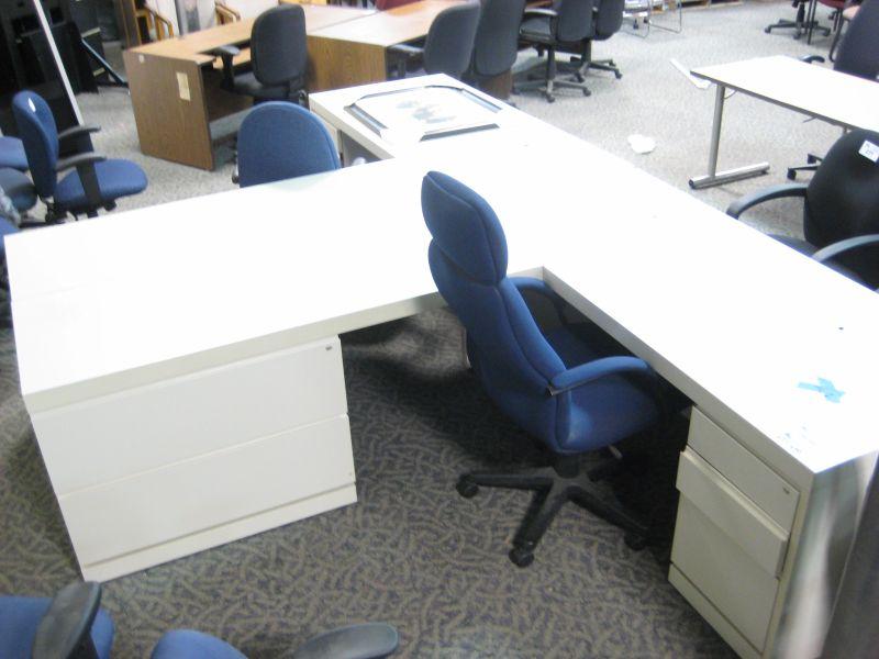 Tan L-shape Executive Desk W/2 Drawer Lateral